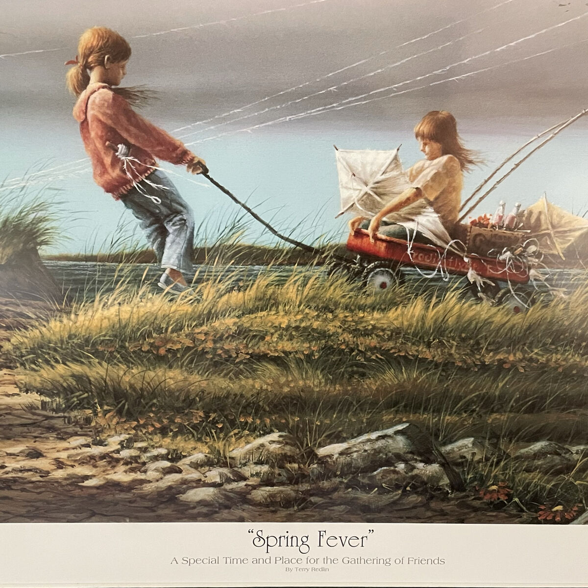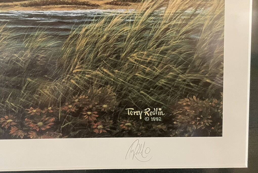 VenmoTerry Redling “spring Fever” framed, signed and numbered (6130/19500) lithograph. “A Special Time and Place for the Gathering of Friends”. One corner has cracked glass. 42” x 28-3/4”
