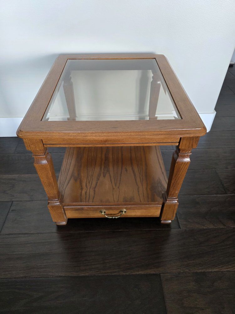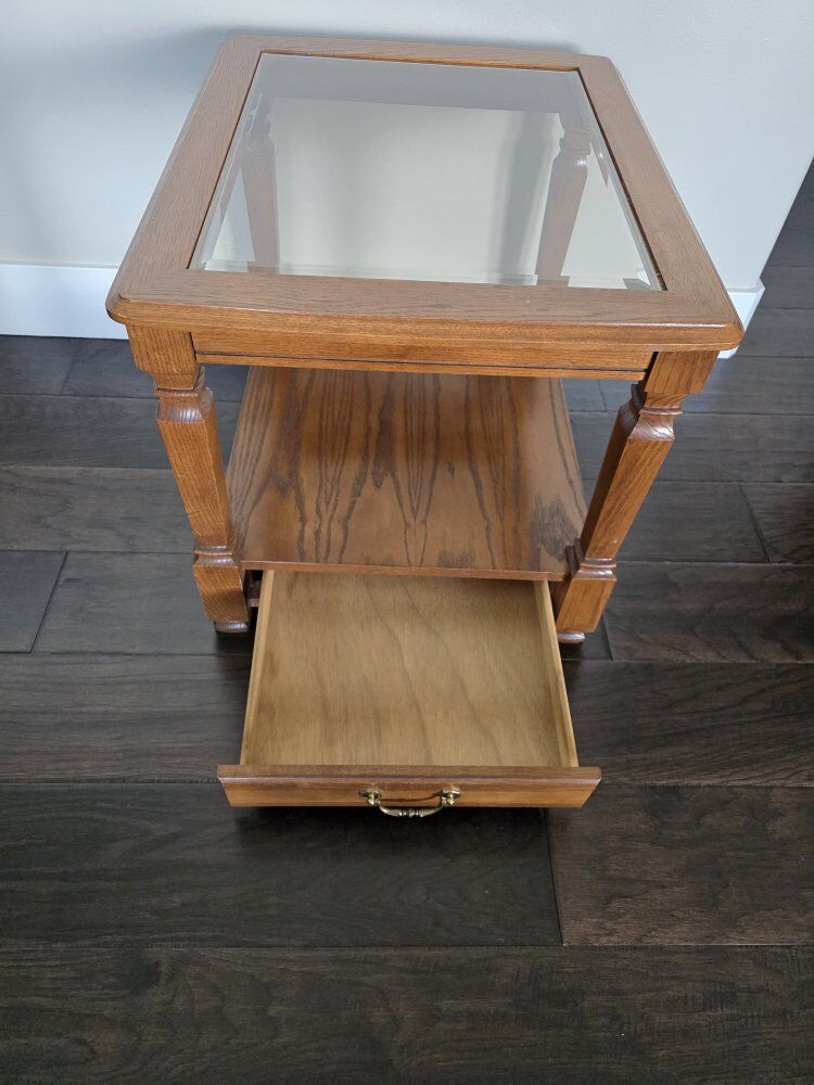 VenmoEnd table with glass top and drawer at the bottom. Like new condition. Asking $25