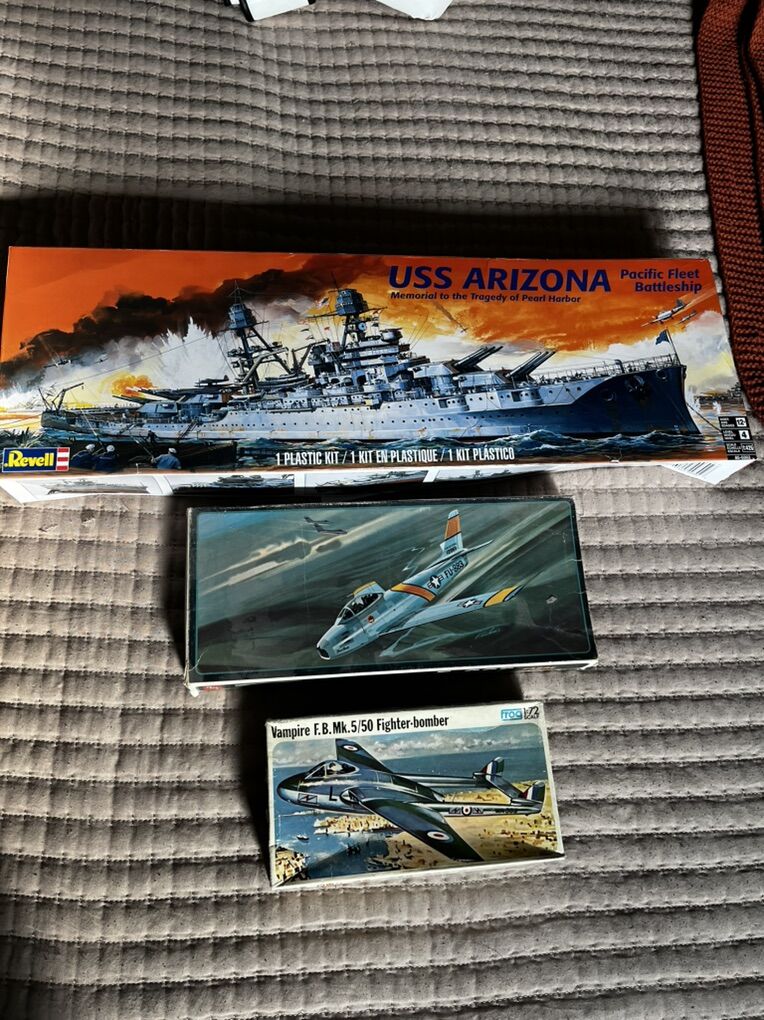 Wartime airplane model kits. Vintage. All parts are there except the middle sized one doesn’t have directions. The large model is missing the bottom box. 15$ for all three.