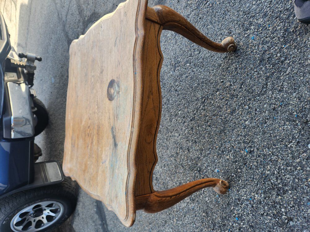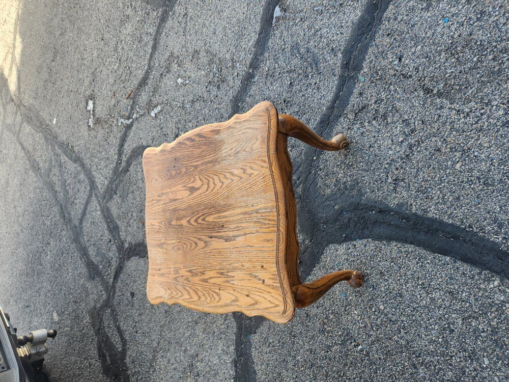 The end tables would be a good project to sand and possibly paint or possibly revarnish. They are solid construction just need some TLC.