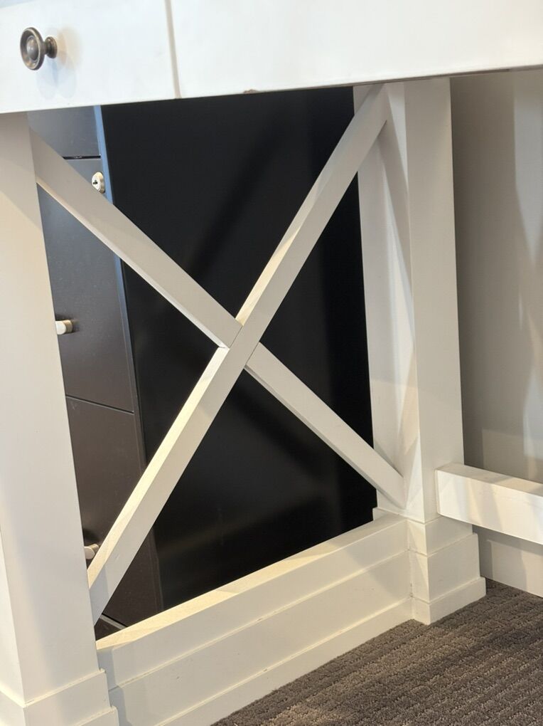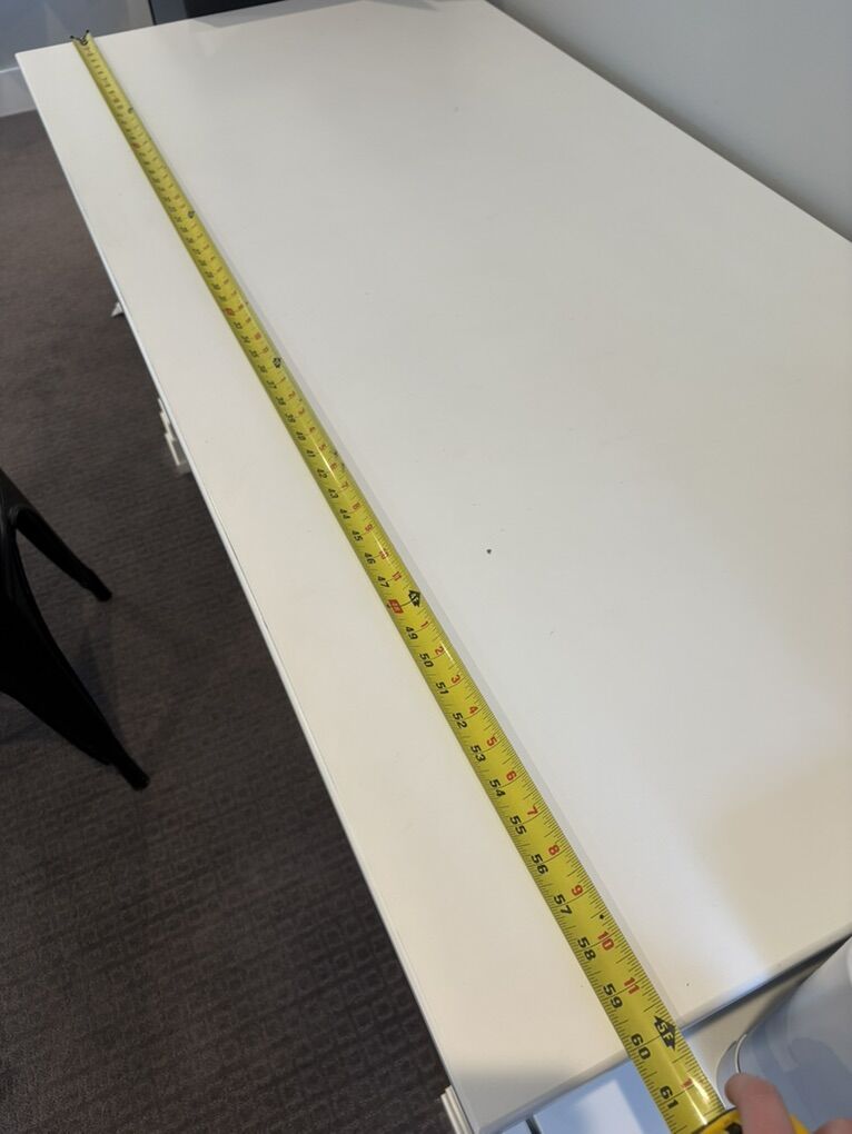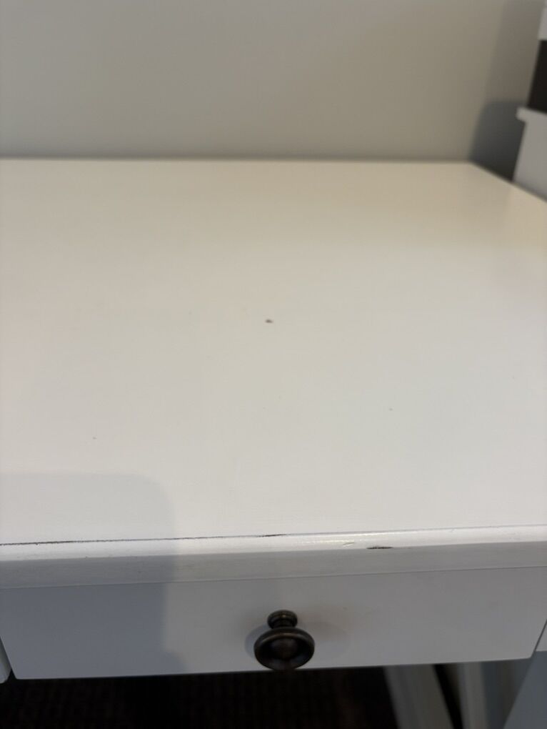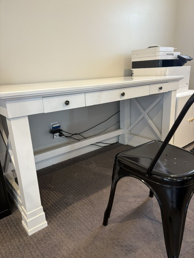 Super nice, good quality white desk. Four years old, used very minimally! Had three drawers! A few imperfections on the top but really sturdy. Cute x side support accents and comes from a clean home! 5 feet long, see pics for other measurements.
