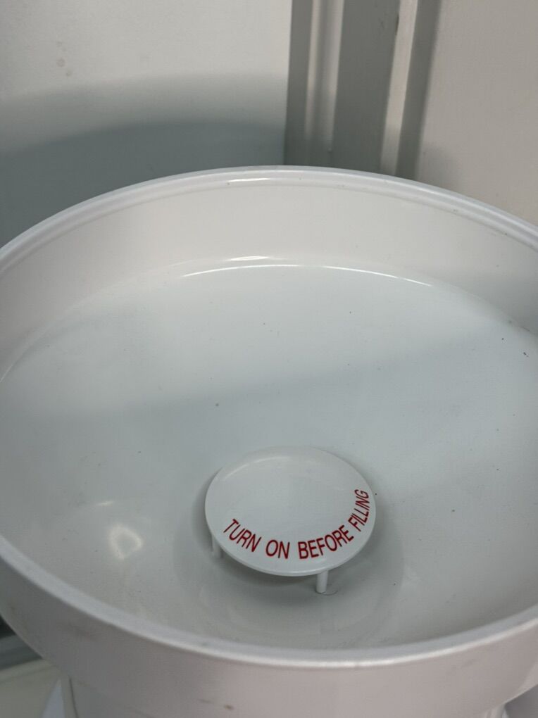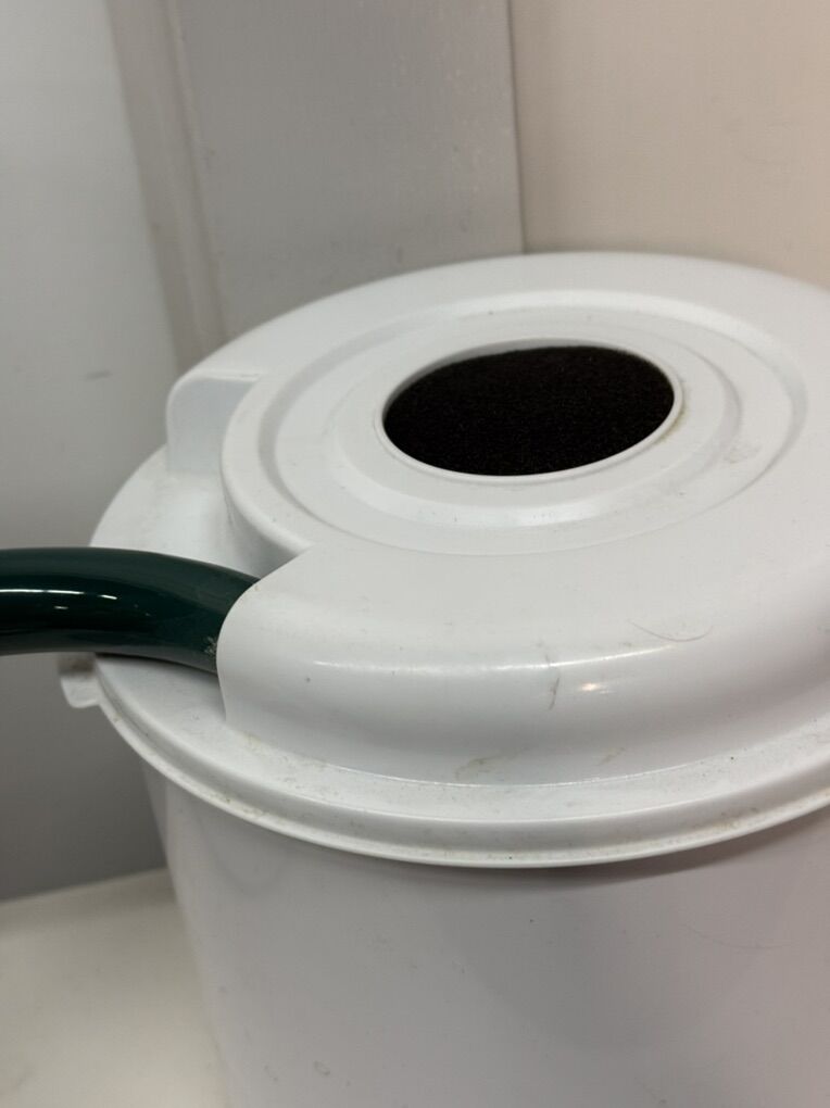 The lid on top, and the cup that goes in the catch bin are missing.