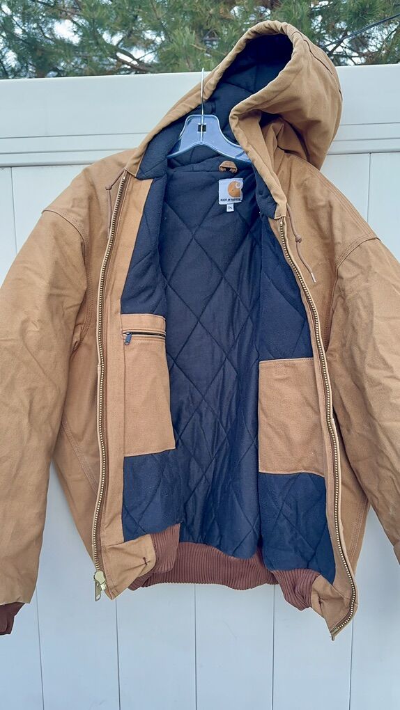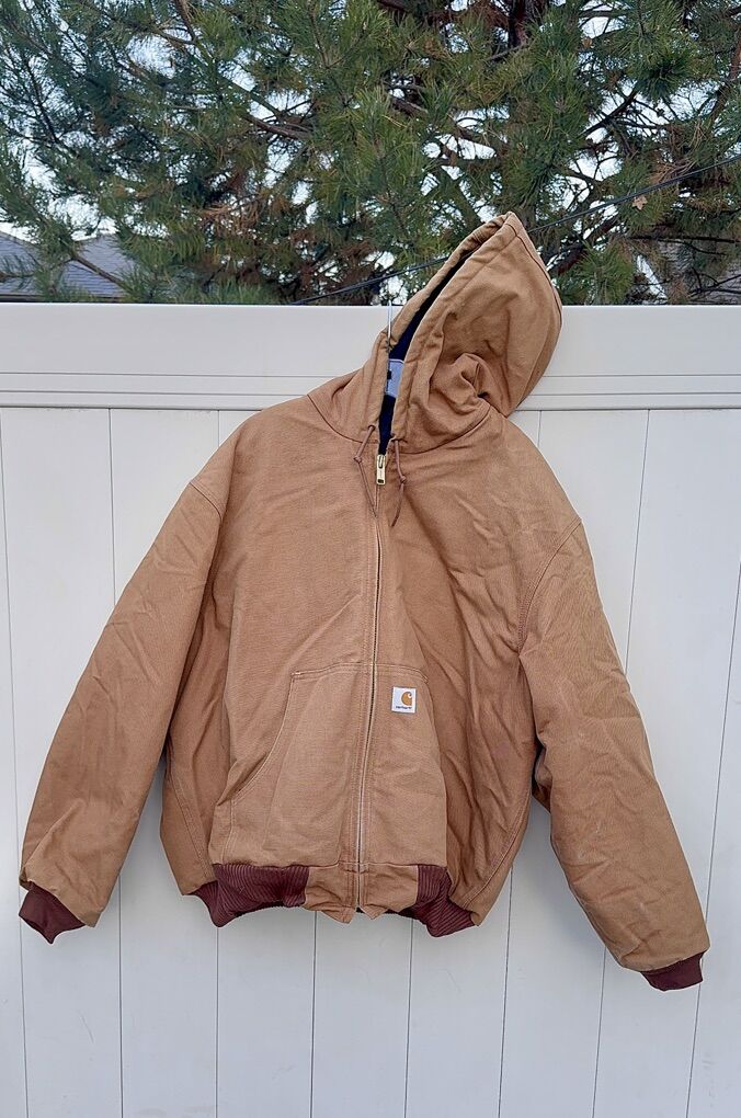 Carhartt hooded work jacket. J140. 10 years old. XXL-fits more like a XL. Duck canvas on the outside with a warm quilted lining inside.