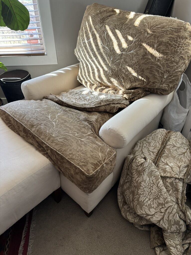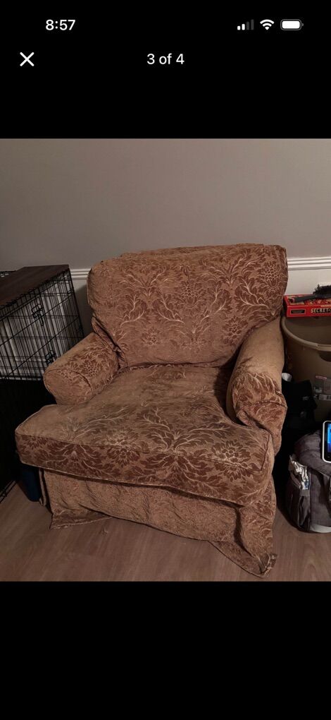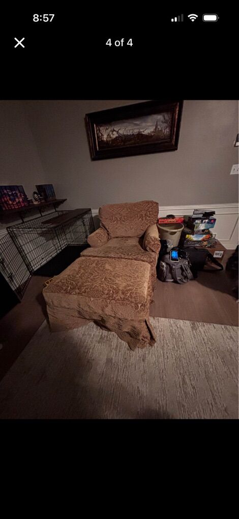 VenmoIn nice shape chair and ottoman. Includes matching covers for chair and ottoman. Cushions have only the green covers. Come and get it today!