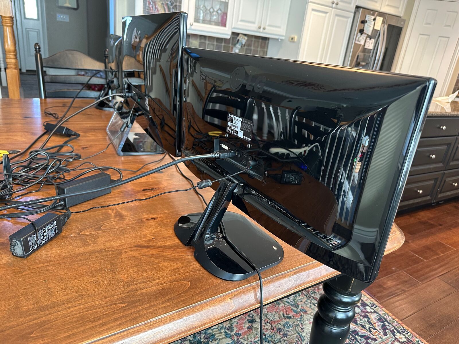 VenmoThree (x3) LG UltraWide Monitors (used-in very good condition), including: One (1) LG 34UM64-PL 34UM64-P Monitor KEY SPECIFICATIONS for 34UM64-P Screen Size: 34″ IPS panel Aspect Ratio: 21:9 UltraWide Native Resolution: 2560 × 1080 (UltraWide Full HD) Brightness: ~250 cd/m² Contrast Ratio: ~1000:1 typical (dynamic up to 5 000 000:1) Response Time: ~14 ms (avg) / ~5 ms (GTG) Viewing Angles: 178° horizontal / 178° vertical Color Gamut: ~99% sRGB CONNECTIVITY HDMI: 2 × HDMI ports DisplayPort: 1 × DisplayPort DVI-D: 1 × DVI-D Headphone Output & Audio Input: Yes FEATURES Built-in speakers: 2× 3 W Screen Split / PBP: Yes (software support) Anti-glare panel coating VESA mount compatible: 75×75 mm Tilt stand (-5° to +20°) ENERGY STAR qualified Refresh Rate: ~56 – 75 Hz depending on input and mode Power Consumption: ~31 W typical Weight: ~3.78 kg