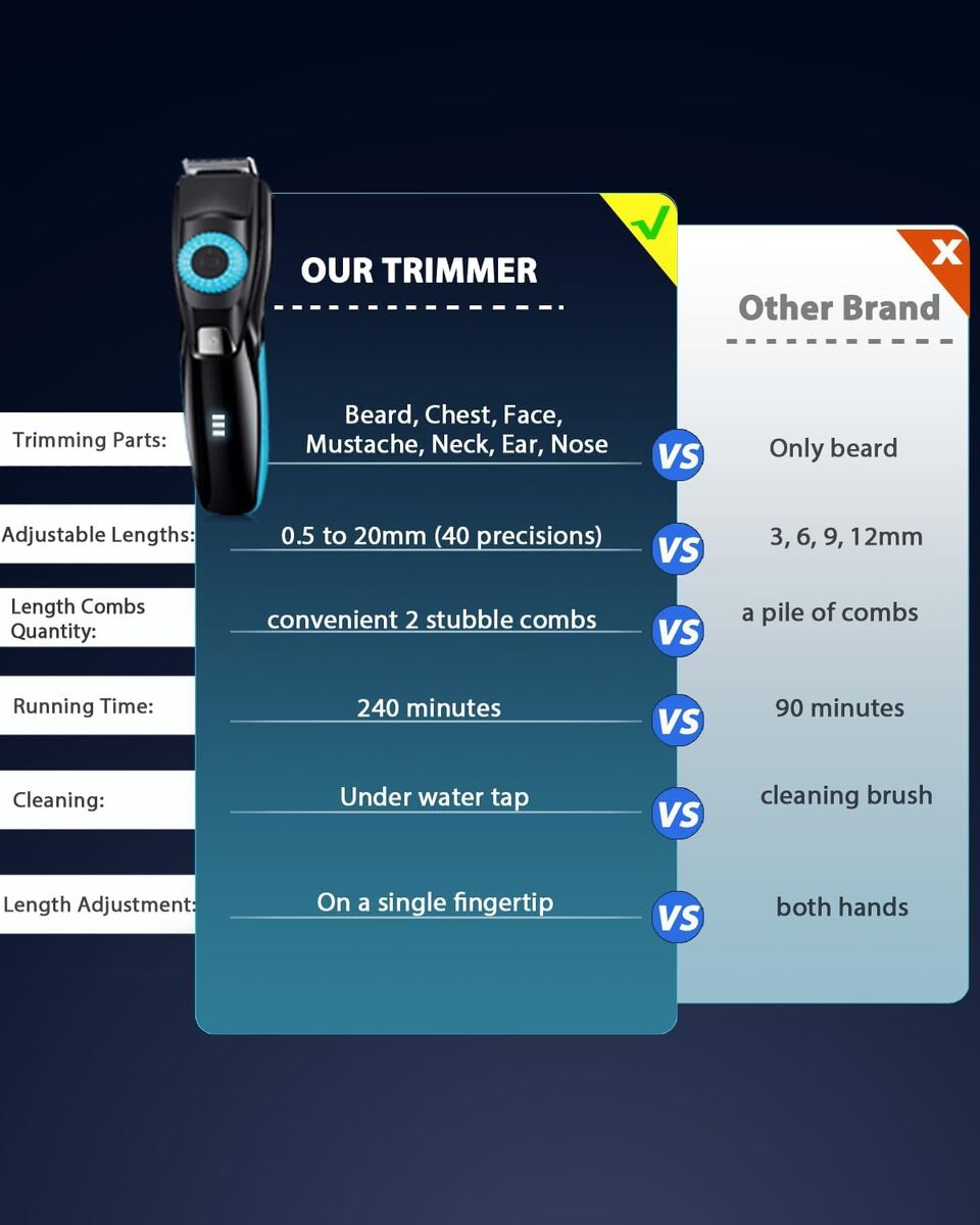 NEW IN BOX! Beard Trimmer for Men, 120-Min Cordless Runtime, 0.5mm Precision Dial (40 Settings) - Constant Power Motor & IPX7 Waterproof Hair Clipper Kit with Detailer & Nose Trimmer, USB-C Quick Charge