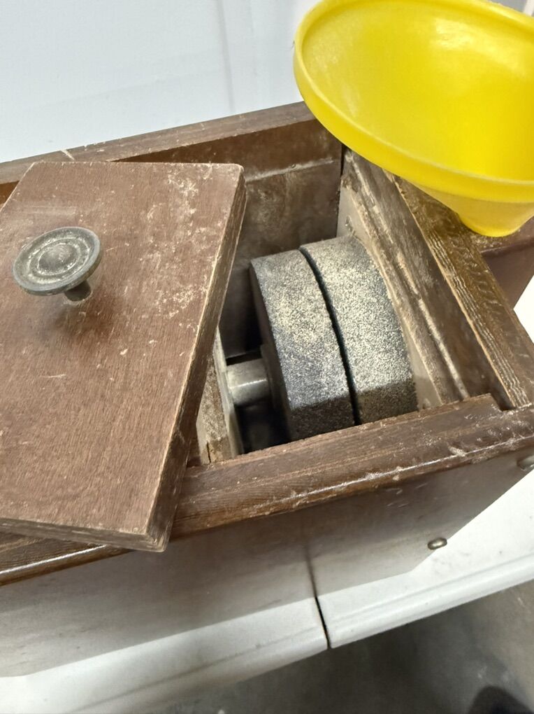 Stone grinding wheels.