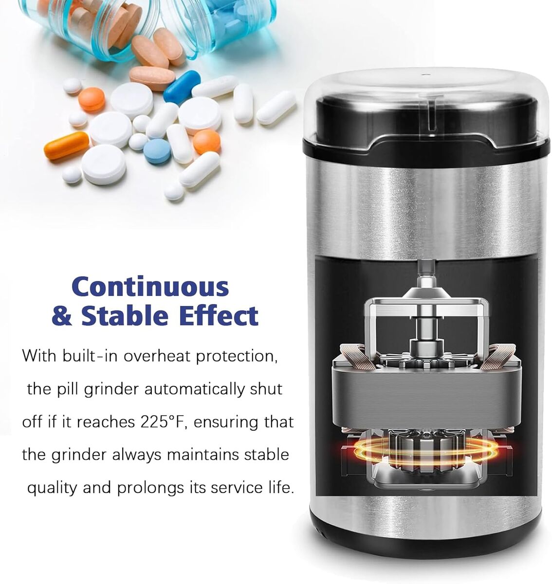 NEW IN BOX! Electric Pill Crusher Grinder - Grind and Pulverize Small and Large Medication and Vitamin Tablets to Fine Powder Extremely, Suitable for Grinding Multiple Pills, Pill Crushers for Elderly (Gray)