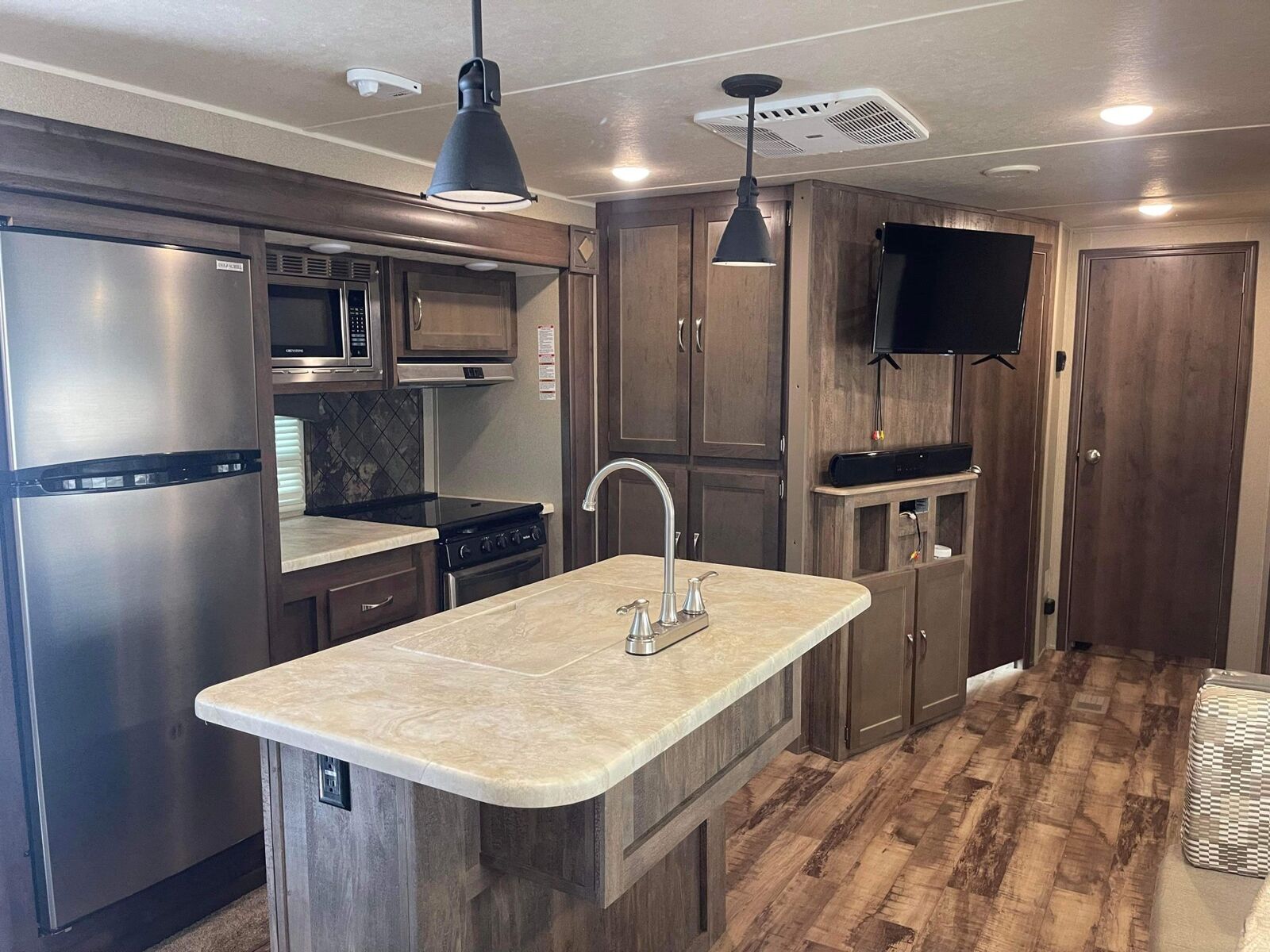 There is to much to list because this thing has everything so I will just list a few things. (It basically has every add on that you could ever want or need on this Travel Trailer!!)