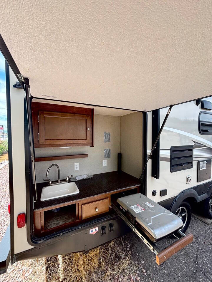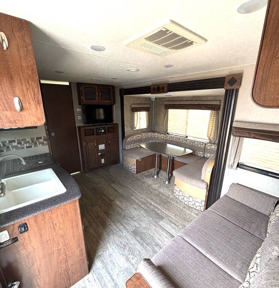 Ready for your next adventure, this 2017 Coachmen Freedom Express 248RBS offers the perfect combination of lightweight towing and spacious comfort. Designed with couples and small families in mind, it features a single slide-out that expands the living area, providing extra room to relax. A comfortable front queen bed with overhead and bedside storage offers a peaceful retreat, while the large U-shaped dinette is perfect for meals and can convert for additional sleeping space. For those who love the outdoors, the convenient rear camp kitchen comes equipped with a sink, small refrigerator hook-ups, and pull-out grill, making outdoor cooking a breeze. A full rear bath, power awning with LED lights, and a heated and enclosed underbelly complete this well-maintained travel trailer.