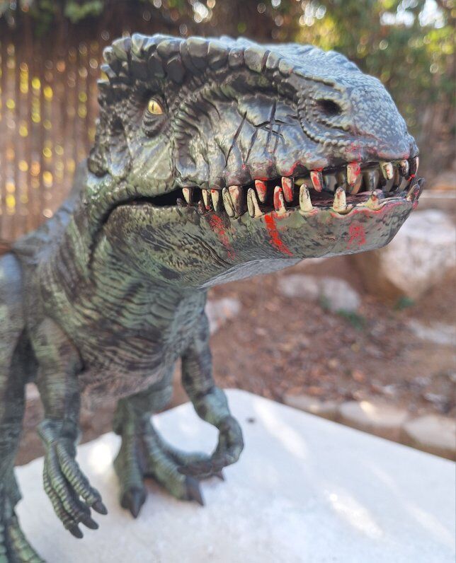 CashAppThis Custom Super Colossal Giganotosaurus is a 3 ft long and I custom painted it after the Dominion movie. With a length of 40 inches and around 18 inches tall, this is the perfect for fans of the Jurassic World series, offering a fun and nostalgic addition to any collection with lifelike paint and blood. Comes from a smoke and pet free environment. Please see photos for closer details, thanks for looking!