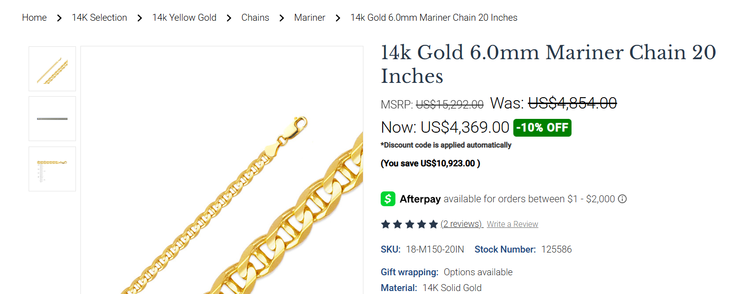 VenmoBrand new unworn SOLID Gold Marina or Mariner Link Chain. Very nice necklace with a great cut for a really nice finish. 20" Long with lobster clasp, made in italy. This is not hollow or plated, this is SOLID 14K GOLD. Gold prices are slowly gaining every day, a great investment and a great wearable piece. May consider trades if it is something super nice? Great deal will not last. Thanks for looking.