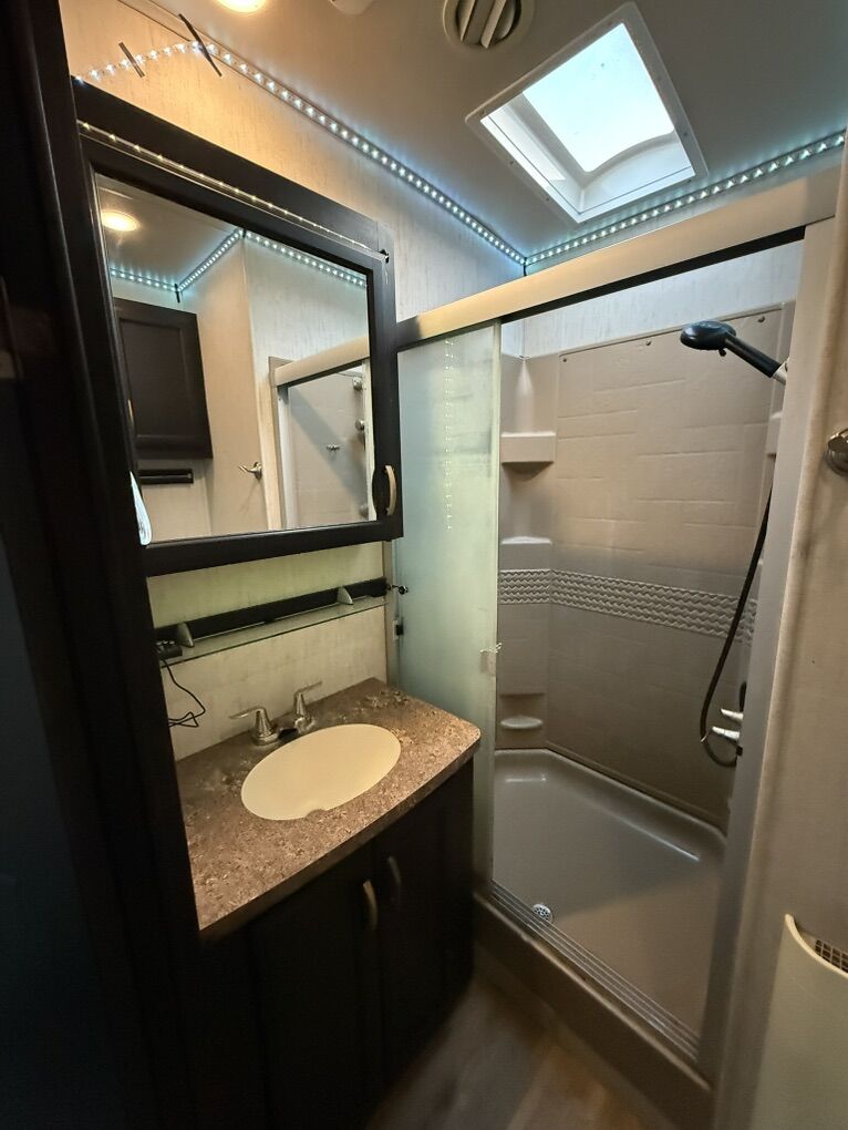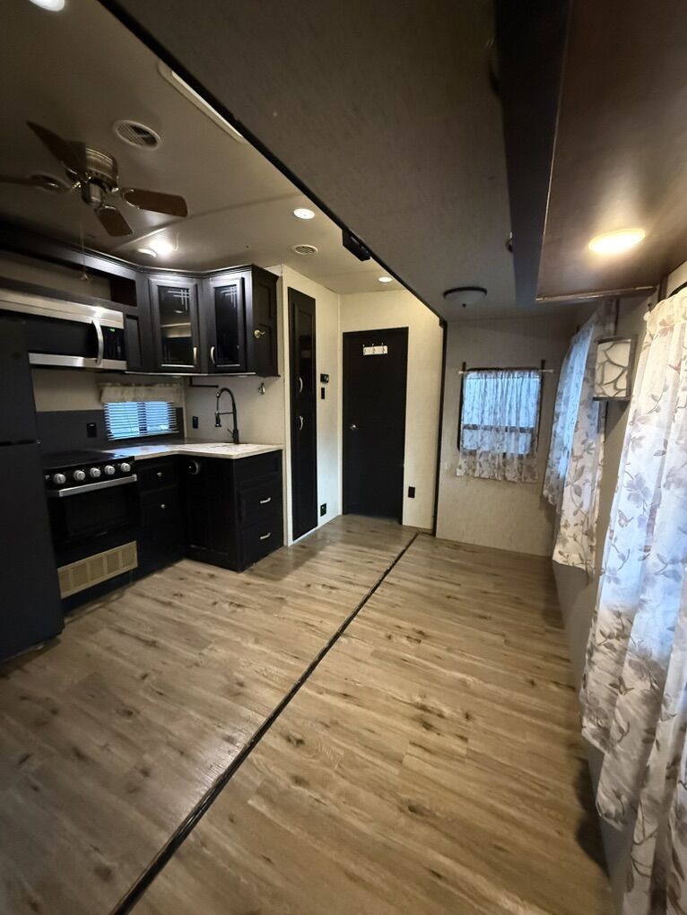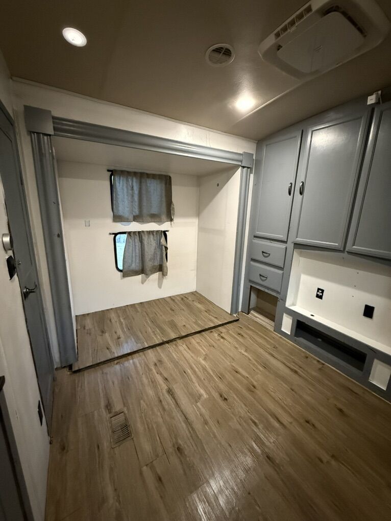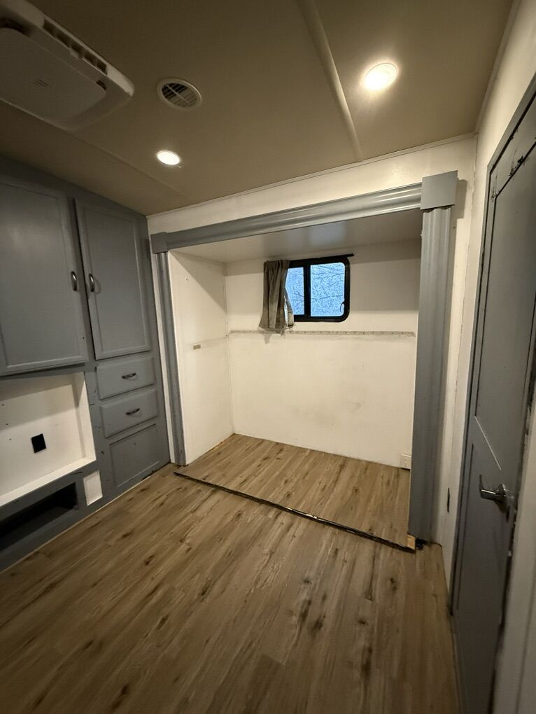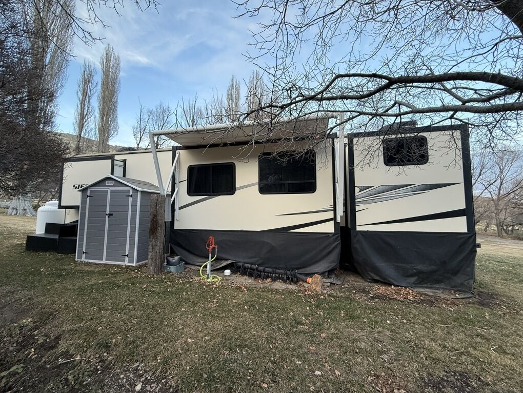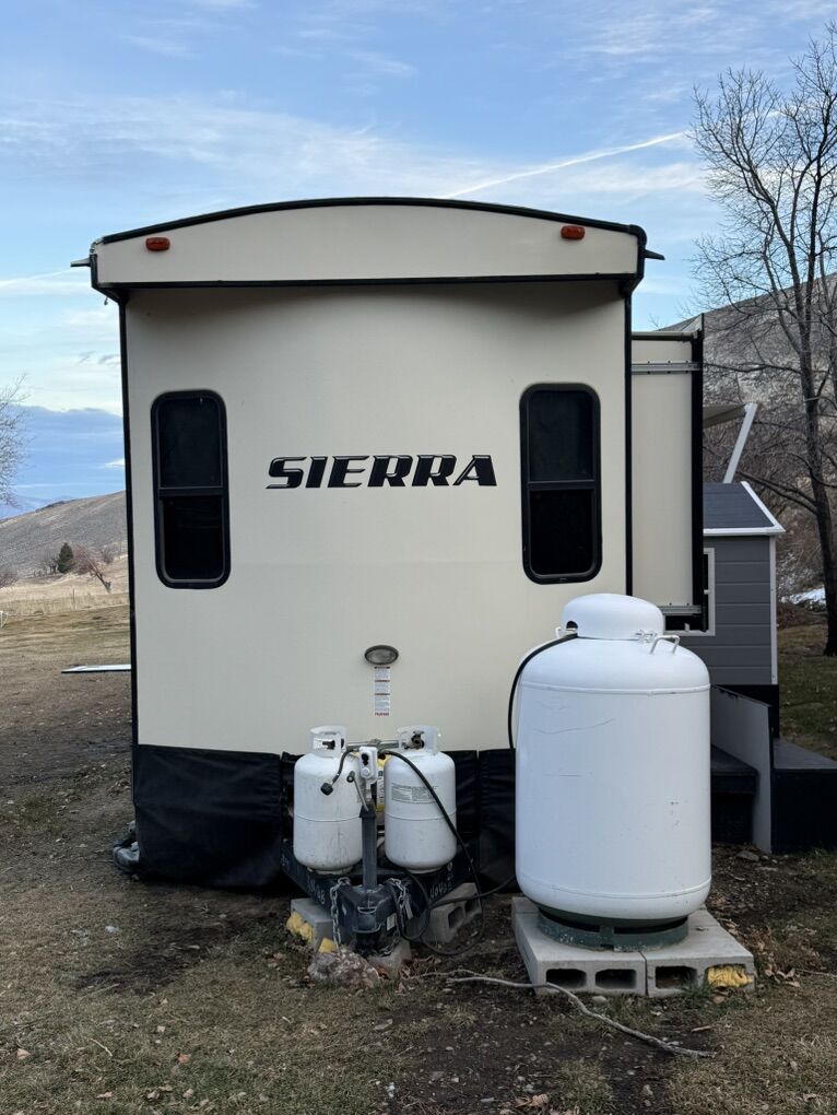 2019 Forest River Sierra 404QBWD 42ft bumper pull destination trailer 50 AMP system. For sale, $33,000 OBO we are moving and want it gone asap! We are open to negotiations and willing to make a deal. We bought it in 2022 had it for 3 years, since then we put all new flooring in, a new fridge, a on demand water heater, and new furnace. Comes with custom built skirting built by Sharps Tarps out of Salt Lake City. It’s a 2 bedroom 1 and a 1/2 bathroom. The half bath we converted into a mud room but can easily be turned back into a bathroom we have the original toilet on hand. It has a washer and dryer hook up in the master bedroom. It has 8ft ceilings. The belly of the trailer is insulted and has tank heaters. The second bedroom had bunk bed but we took them out to make more room for our kids, and the living room we had put our own furniture in to make it more comfortable. It is a completely blank slate that you can make your own!
