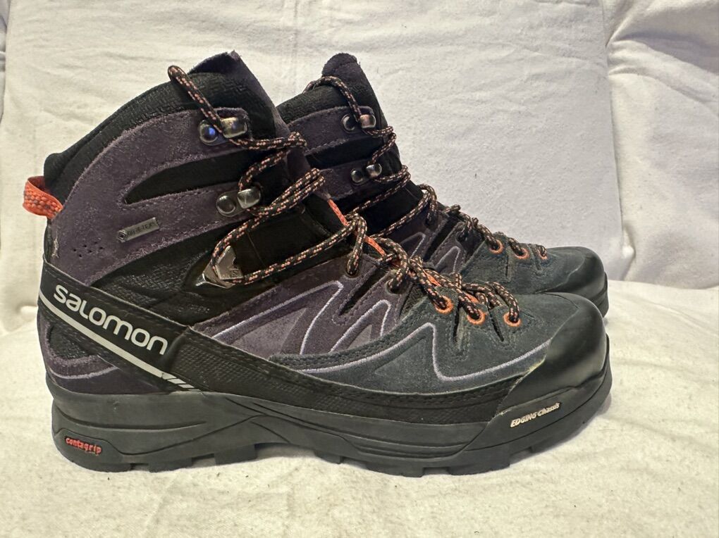 Salomon X-Alp gore-Tex women’s size 7.5 navy/purple leather and textile mid hiking boots. These are in excellent condition, see photos for details. I take cash or Venmo, but cash is preferred. Text is best. 801-201-4446. Check out my other ads for additional sizes and styles.