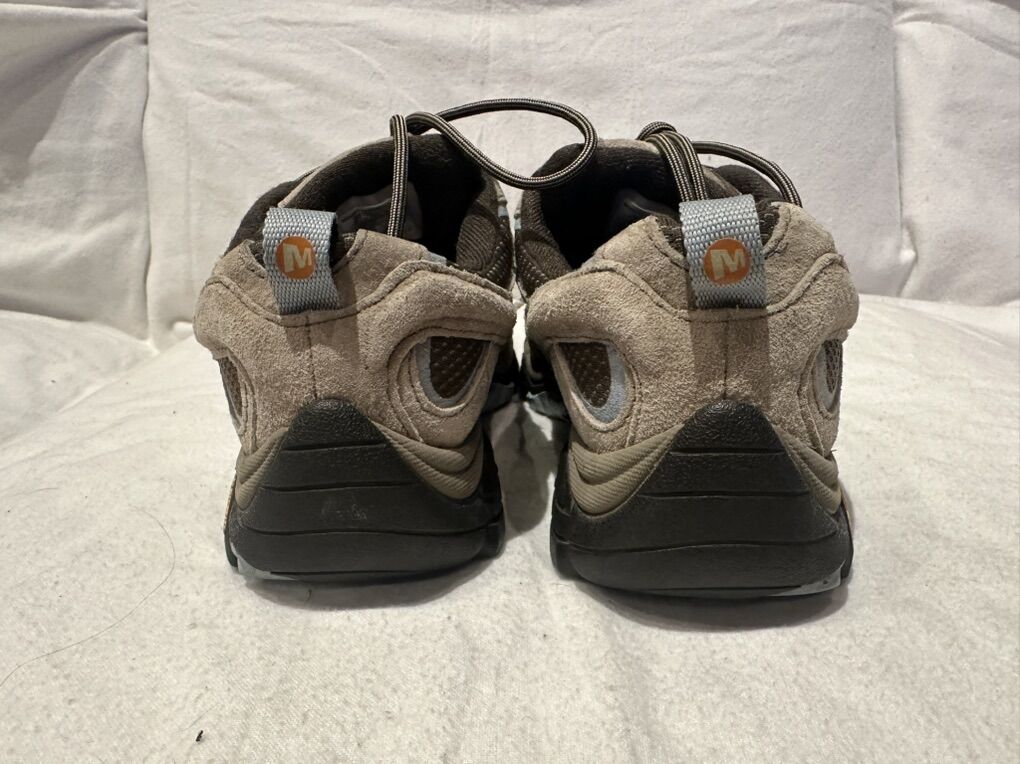 Merrell women’s size 8.5 brown and beige with blue trim, mesh, and leather hiking shoes. Model number J99764. These are in excellent condition, see photos for details. I take cash or Venmo, but cash is preferred. Text is best. 801-201-4446. Check out my other ads for additional sizes and styles.