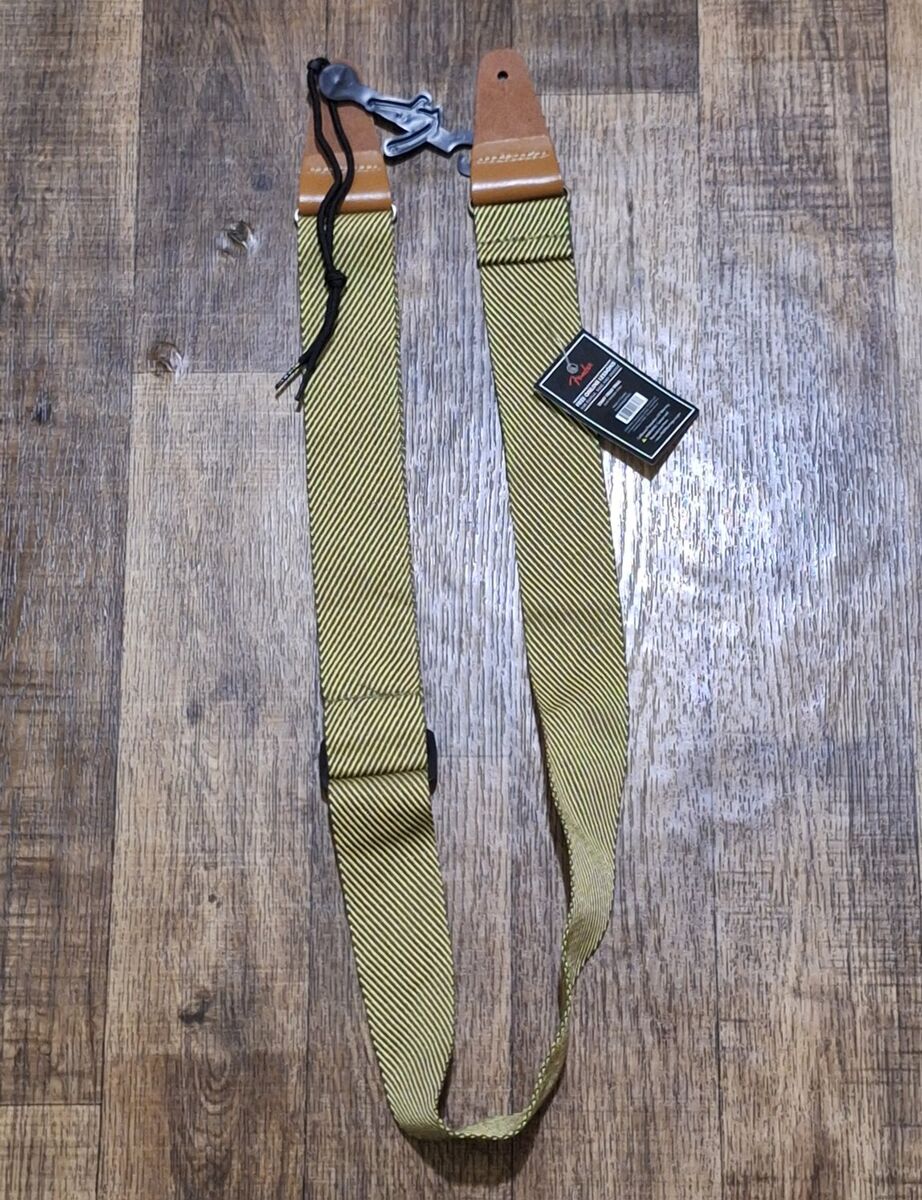 Here's a brand new Genuine Fender 2" Vintage Yellow Tweed Adjustable Guitar Strap with F Logo