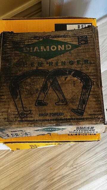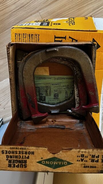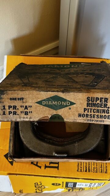 This is a Vintage old set of horseshoes game with its original box - heavy and metal - box shows age and wear. Includes 4 horseshoes. Cash only at pick up in Highland, UT