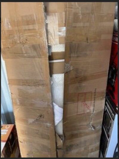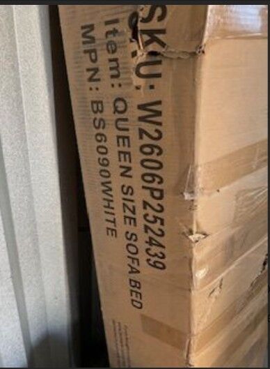 The box is damaged but the sofa is still wrapped in its orginal packaging. This has been inspected prior to selling that all pieces and parts are included.