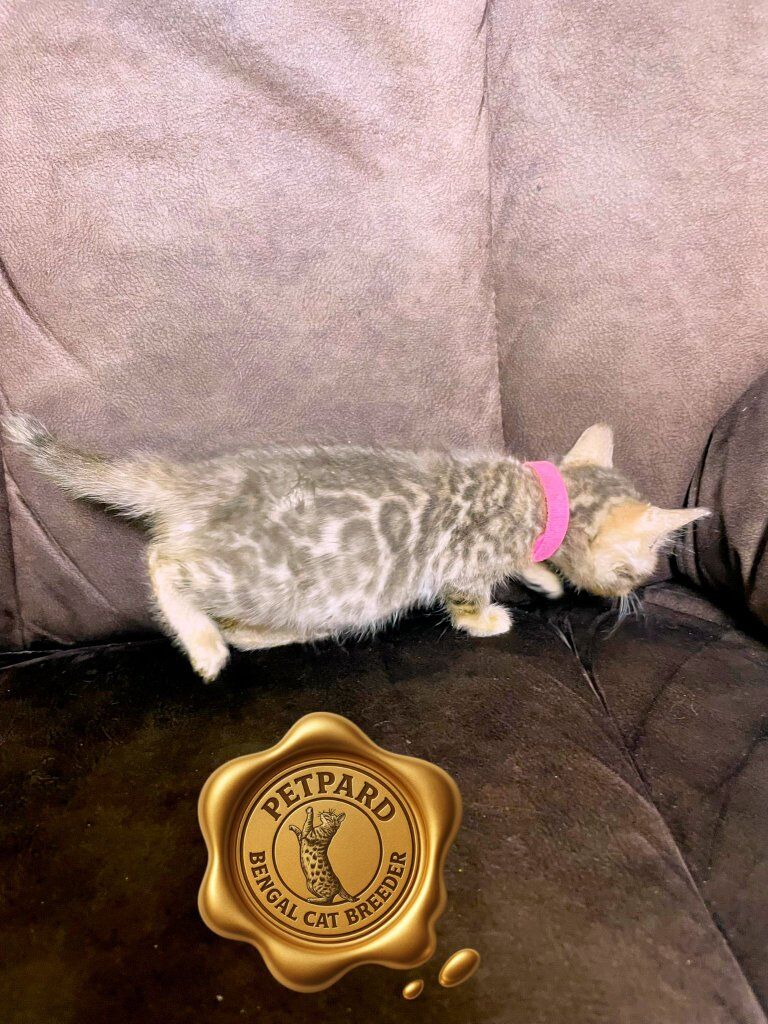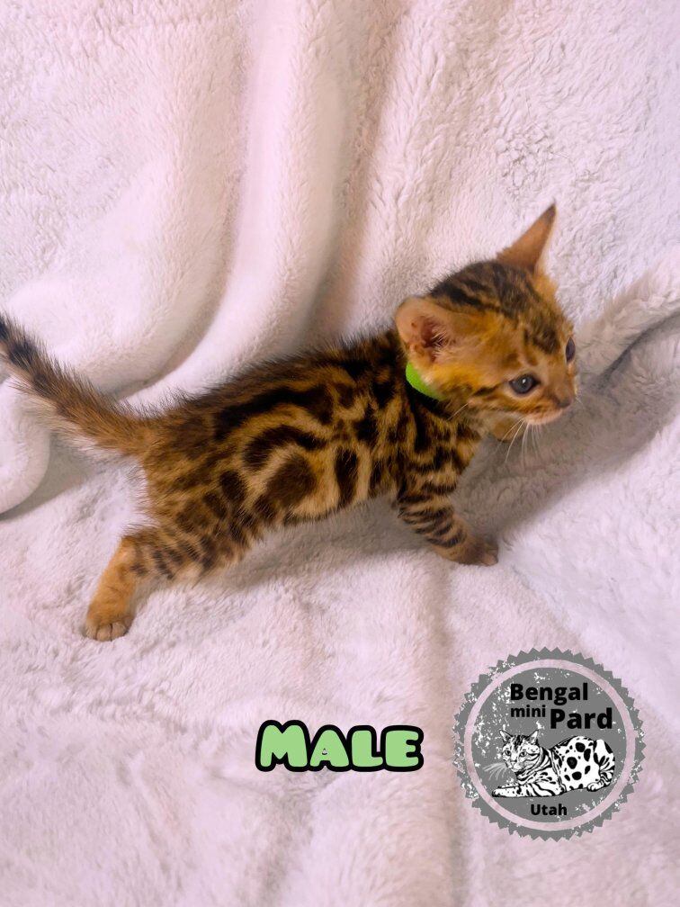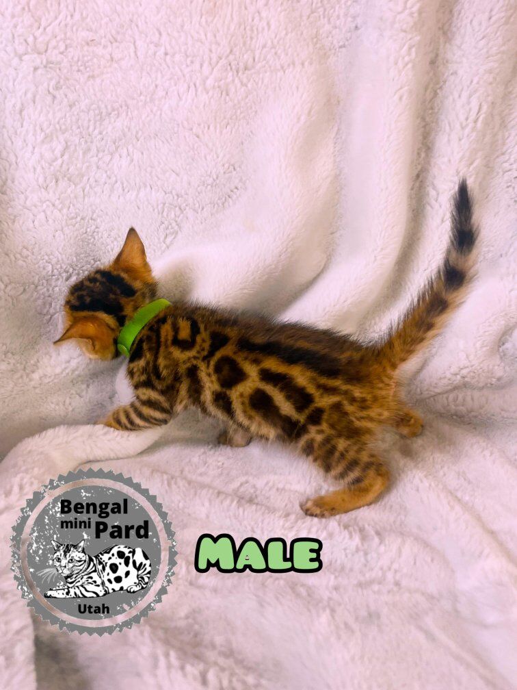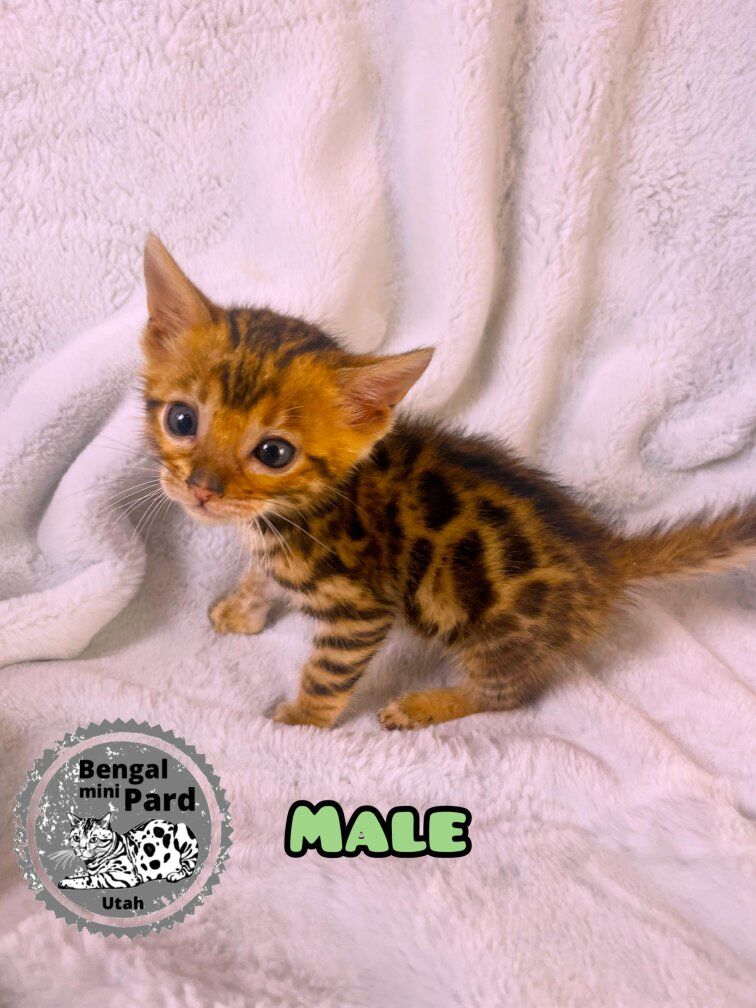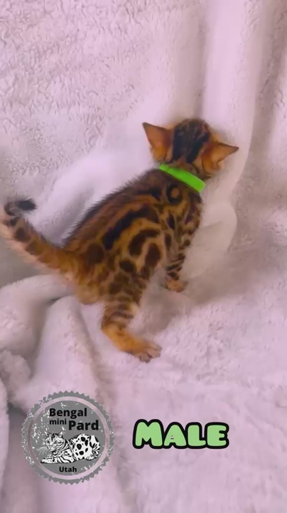 Bengal kittens are in high demand and are considered hypo allergenic with minimal shedding. They are very smart and can be a therapy pet. They can be leashed trained and can play fetch. They love to play with water. They have been well cared for and played with by my kids. They will come litter trained and ready to go. The parents are pure bred bengal cats. These kittens will be sold as pets only and will make a tremendous addition to your family. We have included some pictures of the mom and dad at the end so you can get an idea of what they might look like fully grown.