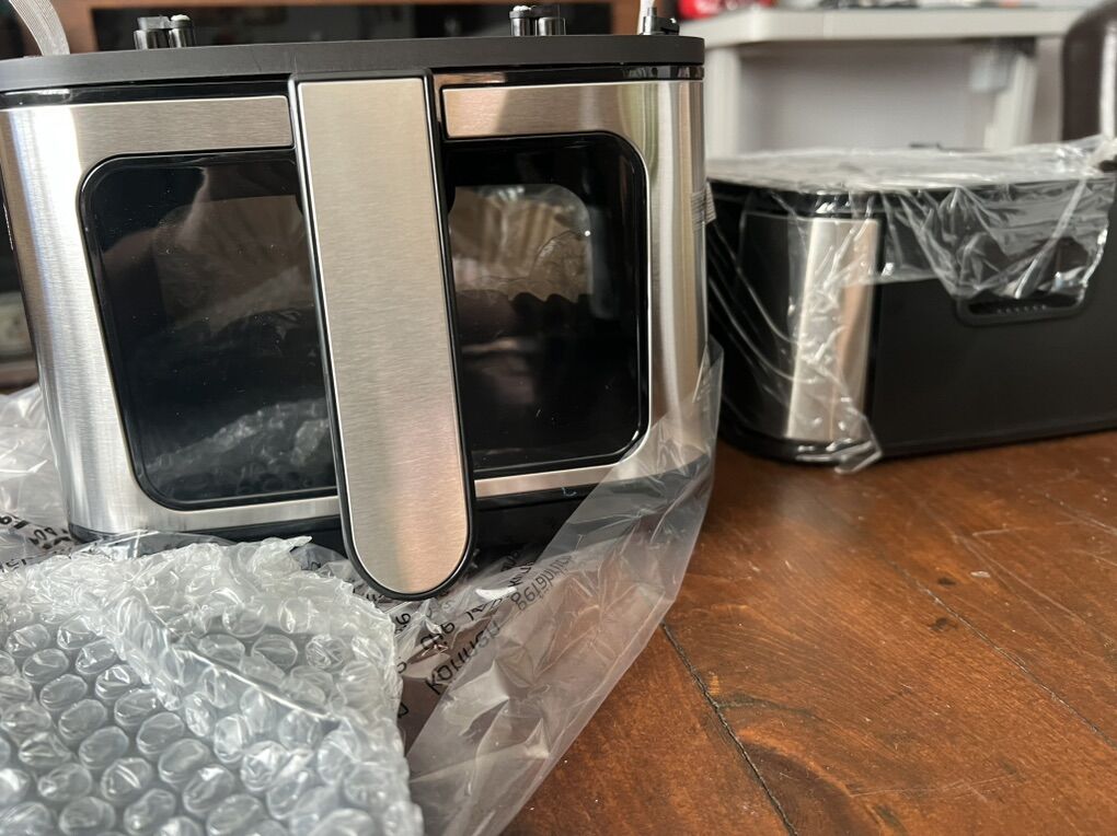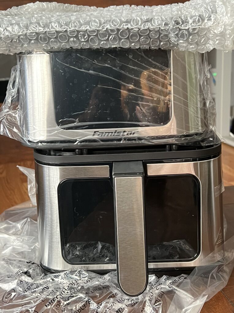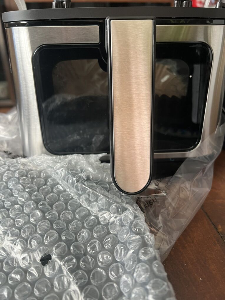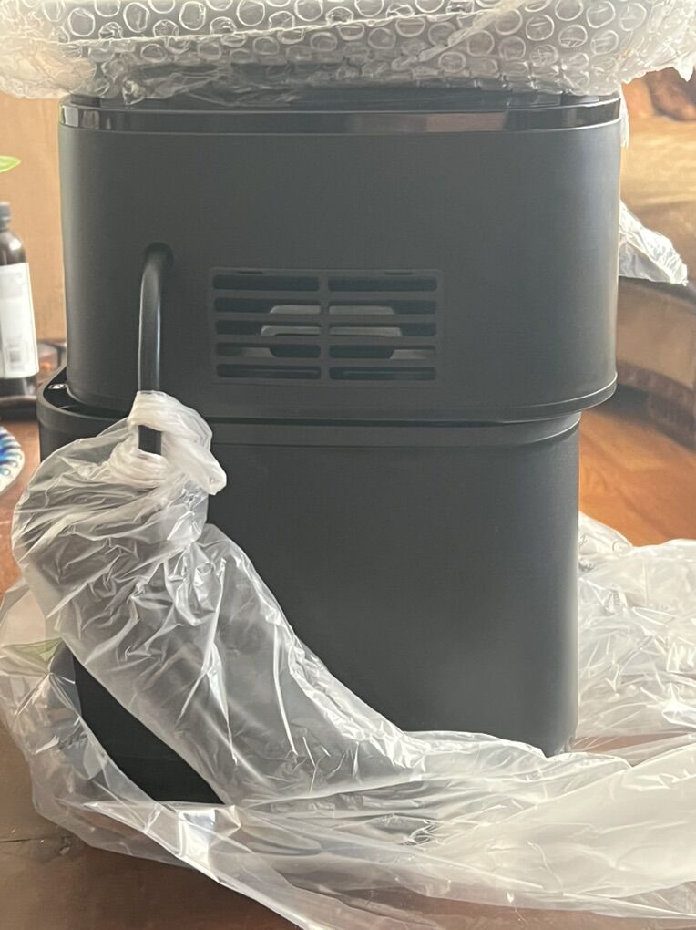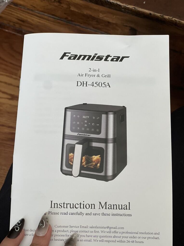 Never used! Box was opened for display, but the appliance is perfectly brand new. Perfect for trying out new recipes and also cooking a wide variety of meals. This air-fryer is super neat with its amenities, comes with removable tray, basket, and paper manual. If youre looking to level up your hosting or party’s. Sleek and modern air-fryer, perfect for families, college students, & non stove top/oven cooking. If you’re looking to save countertop space this non bulky air-fryer is definitely the one for you.