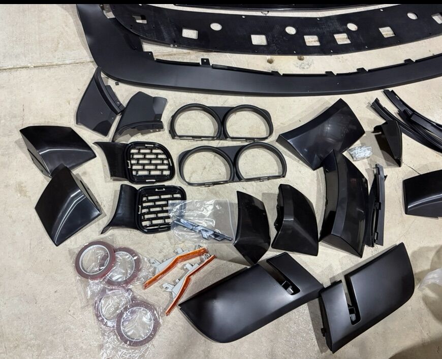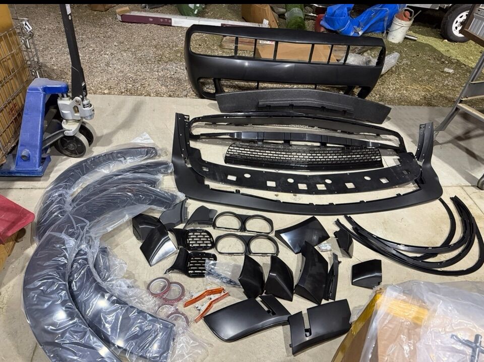 Compatible with 2015-2023 Dodge Challenger SXT, GT, R/T, & R/T Scat Pack Style:Hellcat Style Bumper With Lip, Demon Style Fender Flares | Material:PP | Color:Unpainted Black (Front Bumper Lip: Textured Black) Package Includes:1x set of Bumper Cover with Front lip; 1x set of Fender Flares Instruction is not included, professional installation is highly recommended.