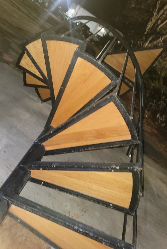 CashAppThis is a quality Custom built Spiral stair case, it was built in 1987 & now removed for remodeling. They are 8" rise & 12" run 12' from bottom @ floor to top of hand rail, see pics for exact measurements. Heavy duty welded iron 1/2 stock 4" center pole, 2.5' round hand railing. this stair case would cost about 9 to 10k in todays market material & labor im asking 5k obo.