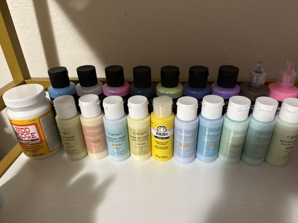 Large lot of premium acrylic paints, mostly new or barely used. Great for pouring, crafts, resin art, slime, and DIY projects.