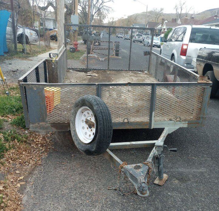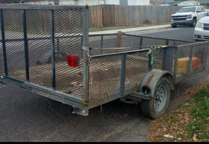 ATV trailer with 2 ramps: 5'11" inside width 6'6" inside width at the front 10' inside length 10'4" outside length 3'9" tongue 14'1" overall length $699.00 Text or call Ron texting is best 801-661-1338