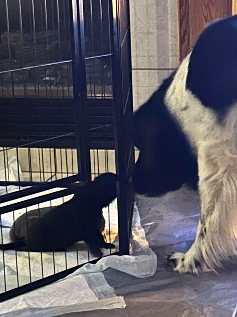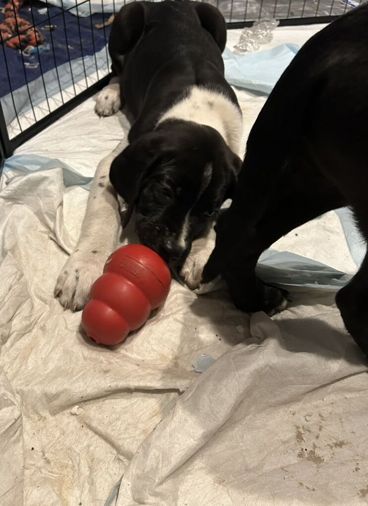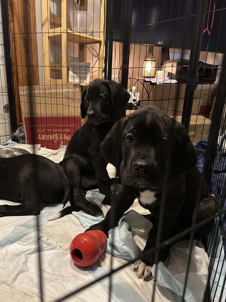 ApplePayReady now Mom- daniff (Dane mastiff) shes 3/4 Dane. Dad- landseer Newfoundland. Pics of parents included in the photos This was an oops but here we are. Puppies born Nov 28th. Last group of photos is- 8 weeks old. They are 11 weeks. The last girl available her pics say ‘girl’ We have 3 left. The first 3 pics are the pups available. Black and white. Current weights(2/5/26)are 23-28lbs