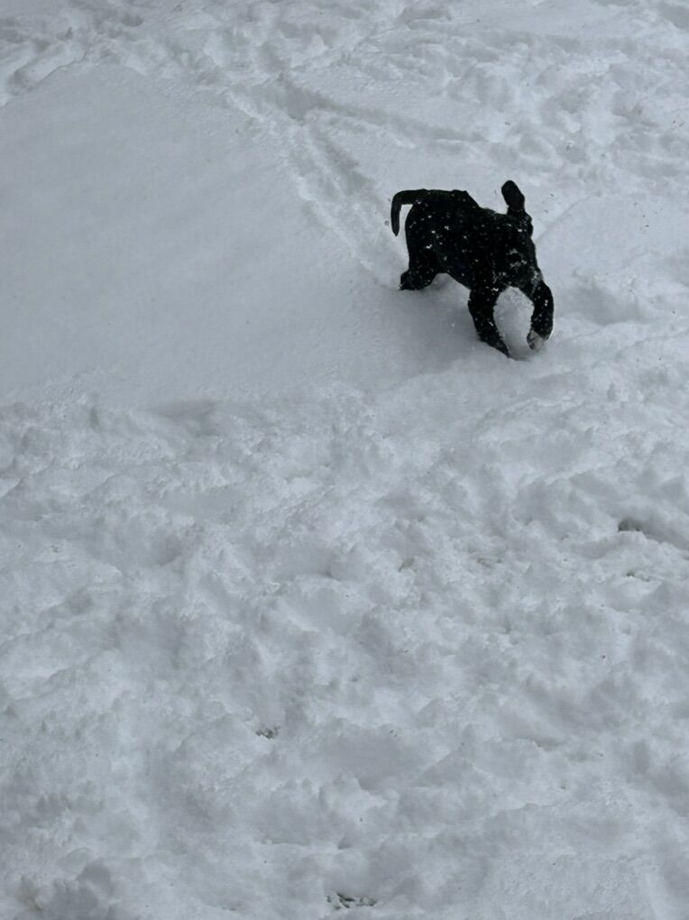 They will look more like Danes. We’ve been taking them outside to get them use to that. They love running around. Working on potty training. We let them play in the backyard. They’ve been learning stairs. This is a great winter for potty training where we have no weather. But definitely not put off by snow! That’s the newf in them. See pics!