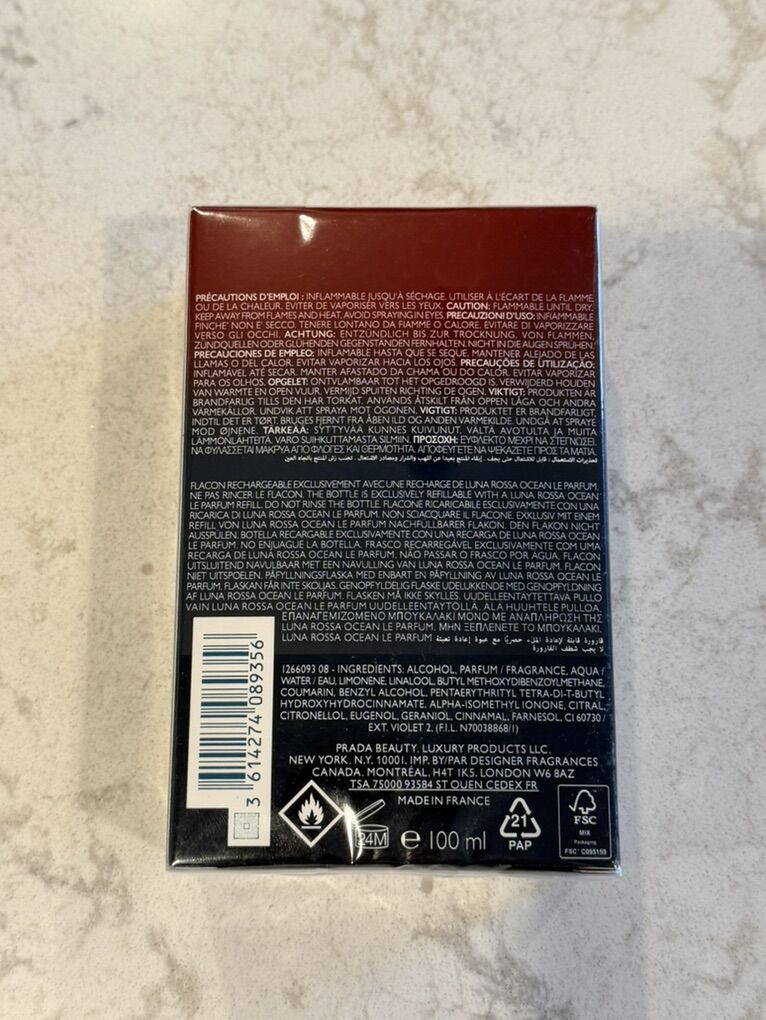 Authentic Prada Luna Rossa Ocean Le Parfum in the full 100 mL (3.4 oz) size. Box is still sealed and never opened. This is the Le Parfum version, known for its deeper, more intense scent compared to the EDT/EDP. Great gift! I have a personal one, Open to offers!