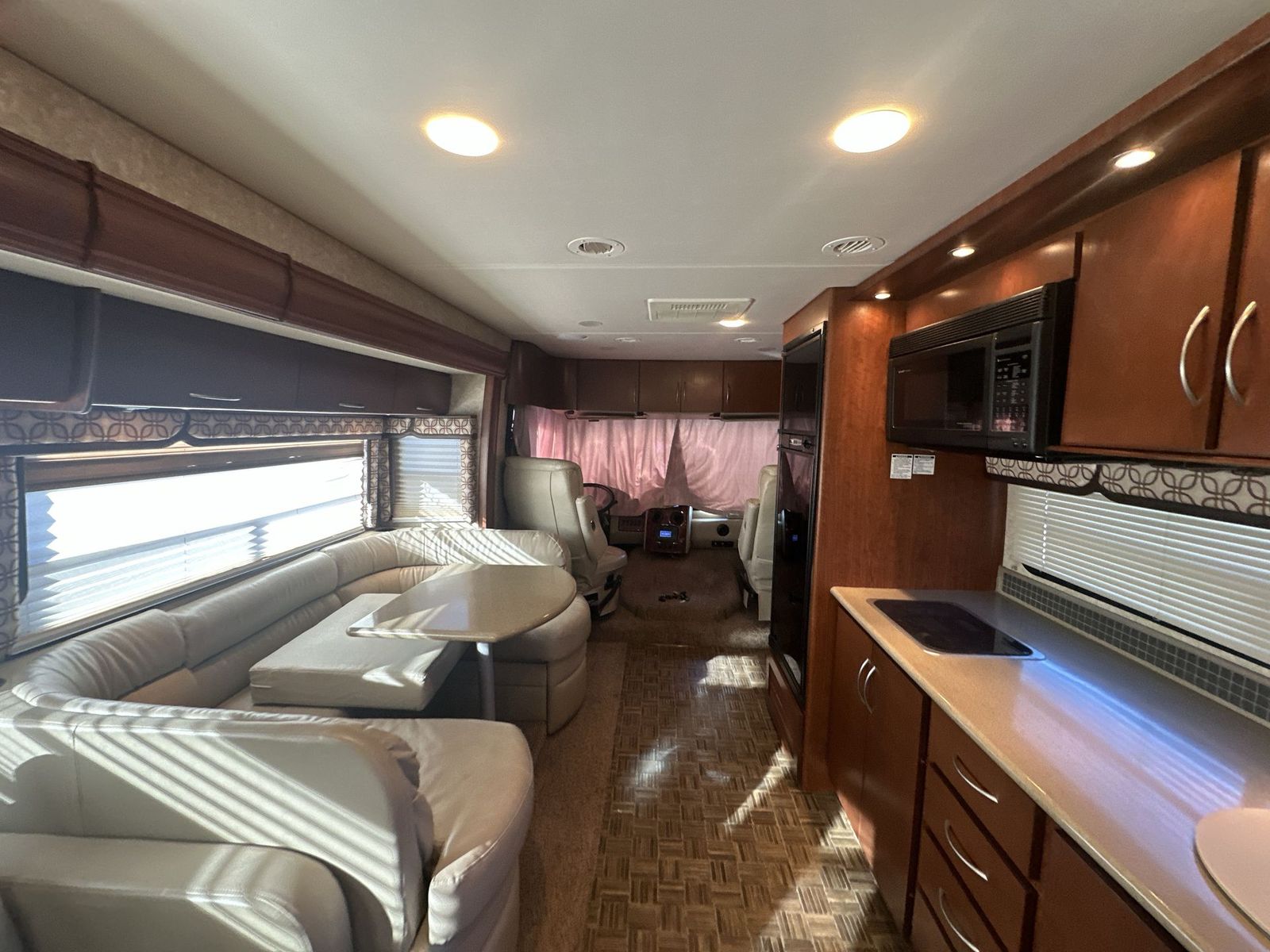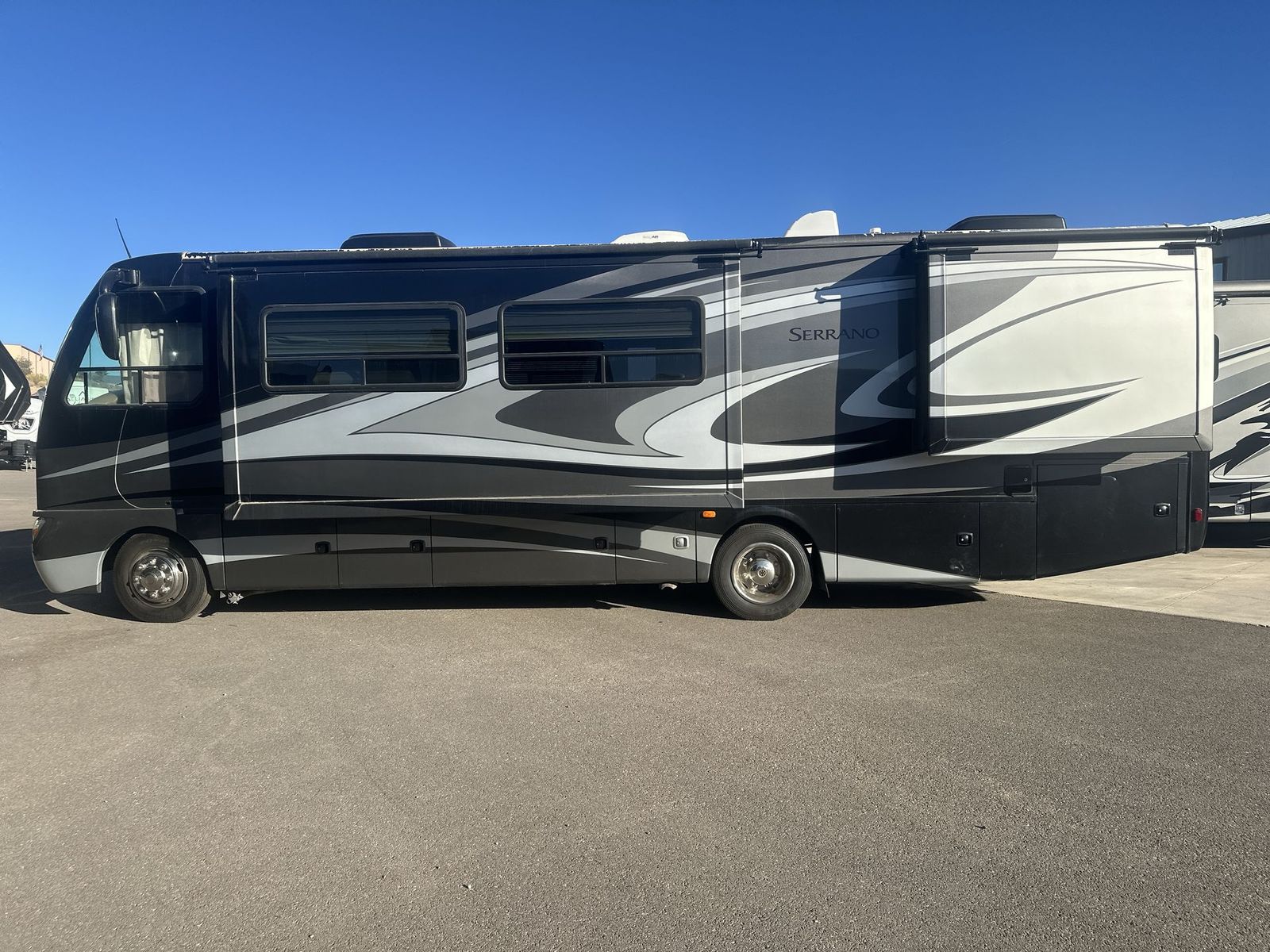 Thor Motor Coach Serrano Class A Diesel Coach w/Rear Queen Bed Slide w/Dresser, Walk Thru Bath w/Private Toilet Area & Sink, Shower, Hide-A-Bed Sofa & U-Shaped Dinette Slide, 32" LCD Mid Ship TV, Round Kitchen Sink, 2 Burner Stove, Microwave, Refrigerator, Pantry, Overhead Storage Throughout and More! Available Options May Include: 19" LCD TV in Bedroom.