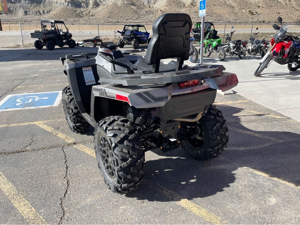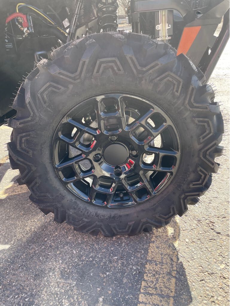 Ultimate Front Bumper Engine Type: Single-Cylinder Displacement: 36.4 cu. in. (597 cc) Cylinders: 1 Engine Cooling: Liquid Fuel System: Gas Starting System: Electric Front Suspension: Independent Double A-Arm Front Travel: 8.7 in. (222 mm) Front Brake Type: Dual Hydraulic Disc Front Tires: AT 27 X 9-14 Rear Suspension: Independent Double A-Arm Rear Travel: 8.7 in. (222 mm) Rear Brake Type: Hydraulic Disc Rear Tires: AT 27 X 11-14 Frame: Steel Dry Weight: 897.5 lb. (407.1 kg.) Towing Capacity: 1050 lb. (476 kg.) Fuel Capacity: 4.8 gal. (18.2 L) Ground Clearance: 12.3 in. (311 mm) Machine Dimensions (LxWxH): L: 96 in. (2438 mm); W: 48.8 in. (1239 mm); H: 59.3 in. (1505 mm) Wheelbase: 58 in. (1473 mm) Drive Train: Continuously Variable (CVT) Speedometer: Standard Tachometer: Standard
