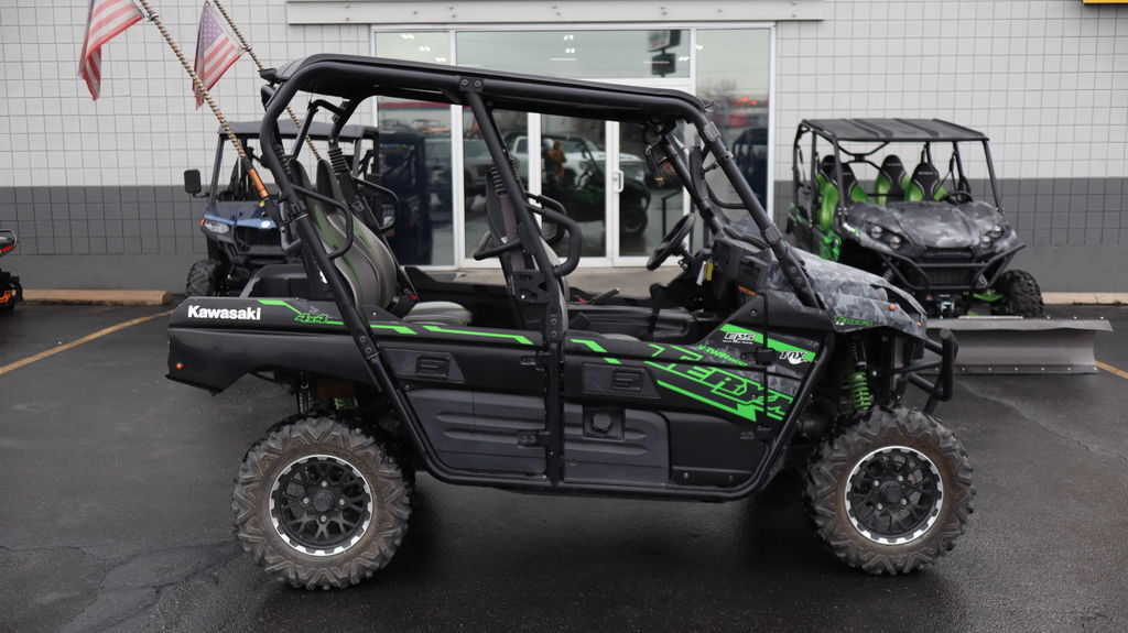 2020 Kawasaki Teryx4™ LE EXPLORE THE OUTDOORS WITH UP TO FOUR Eager for action, Kawasaki Teryx4™ side x sides are built to dominate the trails. With the perfect combination of rugged sport performance and capability, these vehicles are made to conquer the outdoors with up to four passengers on-board. Features may include: 783cc v-twin engine Speed-sensitive electric power steering (eps) Fox podium 2.0 piggyback shocks Kawasaki strong 3-year limited warranty ADDITIONAL VEHICLE Maxxis® Bighorn tires Double-X steel tube frame Additional DC outlet in rear 4 LED headlights Sun top 14-inch aluminum wheels