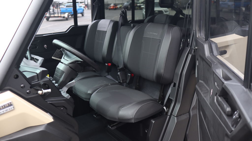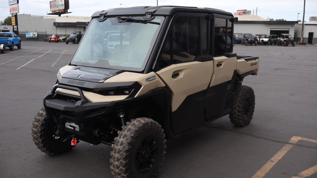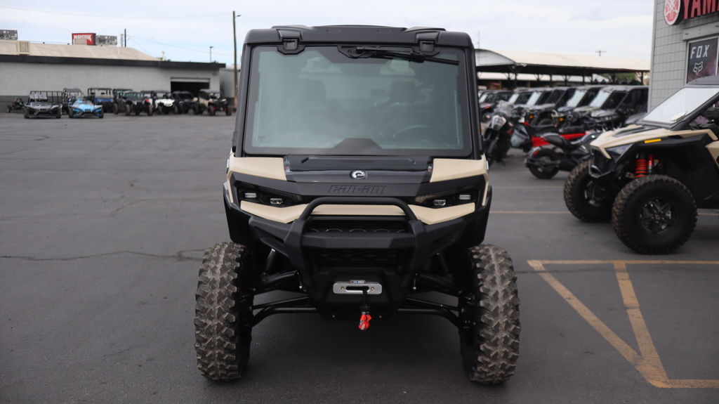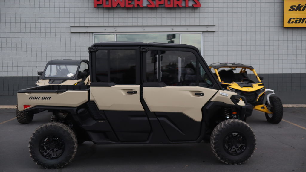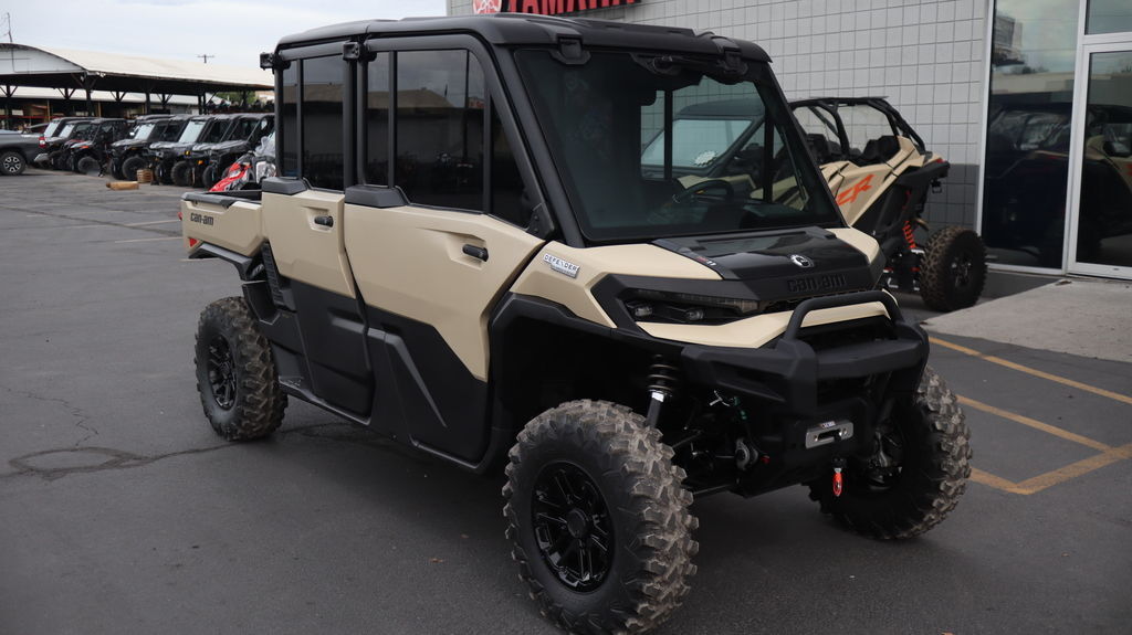 2026 Can-Am® Defender MAX Limited HD11 Desert Tan & Carbon Black The Defender MAX Limited HD11 delivers an uncompromising, robust and tech-forward experience, providing an unmatched ride for you and a passenger. This formidable machine is engineered for riders who demand peak performance. Features may include: Heating, venting and air conditioning (HVAC) climate system Smart-Lok technology front differential JL Audio Level 3, 4 speakers sound system 10.25 in. touchscreen display with rear camera 30 in. XPS Trac Force with 15 in. aluminum wheels Drive like a boss Power with Purpose Heavy loads, long days, no slowing down. With 95 hp, a 70 lb-ft of torque, a new ROTAX engine, pDrive primary clutch and Quick Response System with CVT transmission, it leads in towing and cargo—power for work and play your way. The Ultimate Defender Redesigned for Control & Comfort A premium, reimagined interior delivers comfort and control. With quieter operation, improved suspension, enhanced infotainment, and better ergonomics—this is peak utility. Always on Duty Built to Keep Going With a 4,500 lb. winch, class-leading cargo box and towing capacity, and tough tires, it’s built to do more. Long service intervals and rugged components mean it’s always ready—on the clock or off. Connected Ride Everything you need at your fingertips Added situational awareness with a clear view of rear and front* camera angles. Easily control accessories from the display. Manage media within the applet on your touchscreen. Refined Power Delivery New work-tuned HD11 engine The new 999cc inline-3 HD11 engine delivers 95 HP and 70 lb-ft of torque. Paired with a smooth-shifting transmission, pDrive, and Quick-4Lok or Smart-Lok front diff, it’s built for control and drivability. Best-in-Class Utility Features Class-leading clearance, cargo, towing With exceptional ground clearance, long suspension travel, serious towing and cargo capacity, and reduced NVH, this Defender is built to lead—on the job, off-road, and everywhere in between. Engineered for Easy Maintenance Easier access, smarter design With smart service points and tool-free access to key areas, it’s built for less downtime. Double-bounded bushings, bolted skid plate, and ready-to-work durability seal the deal.