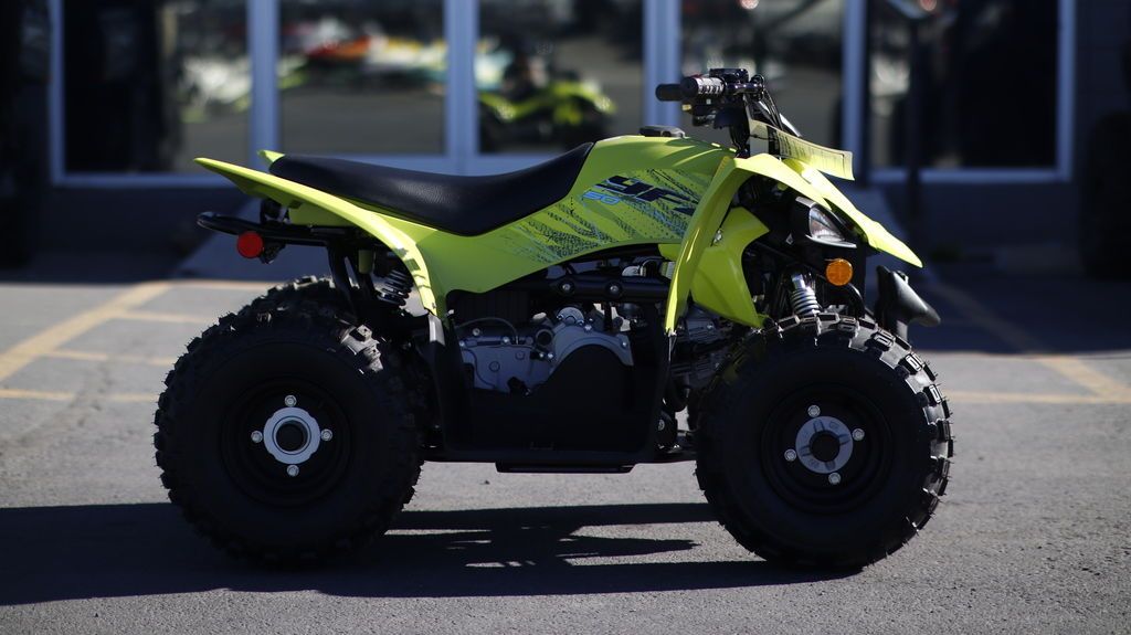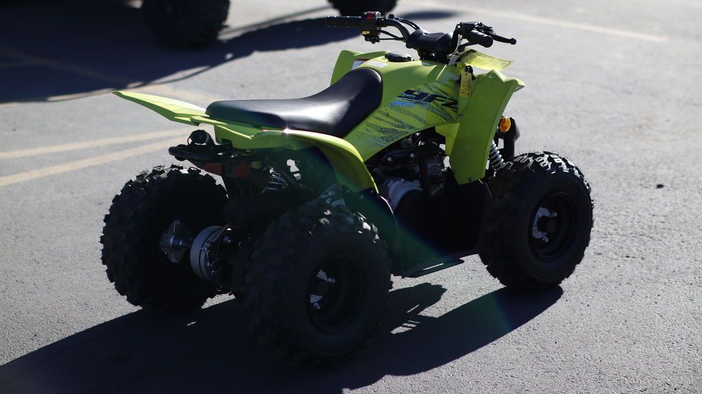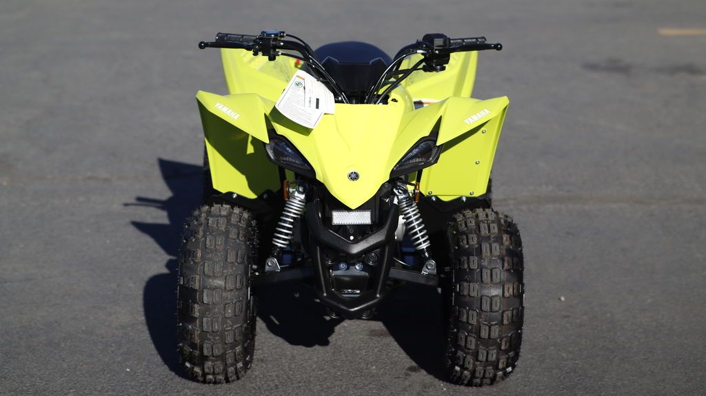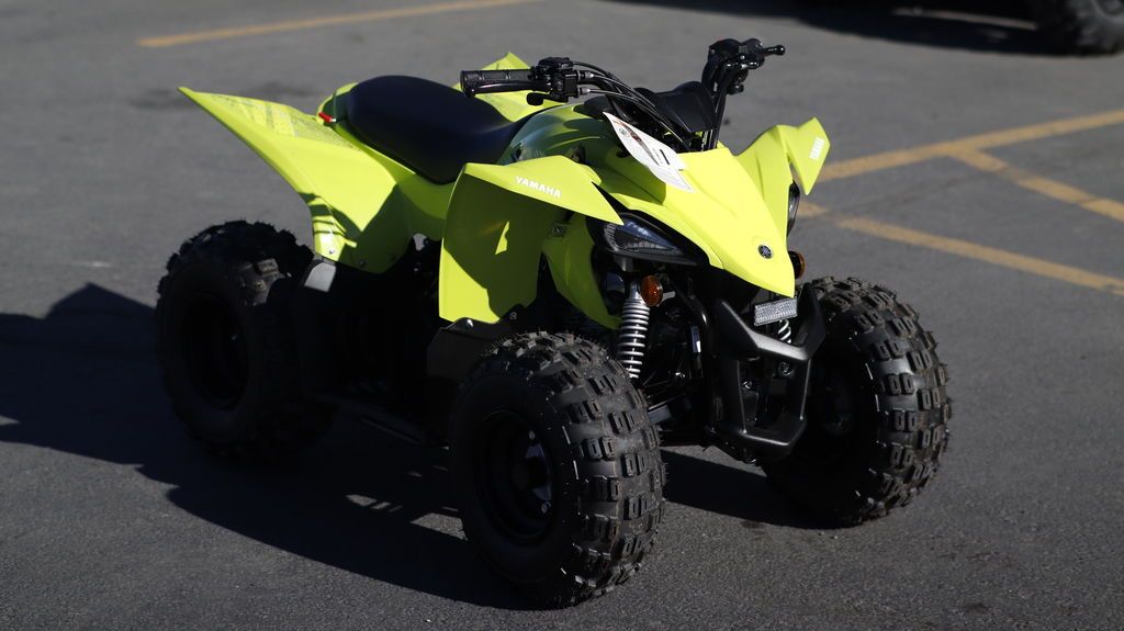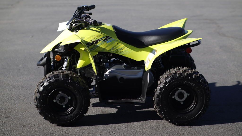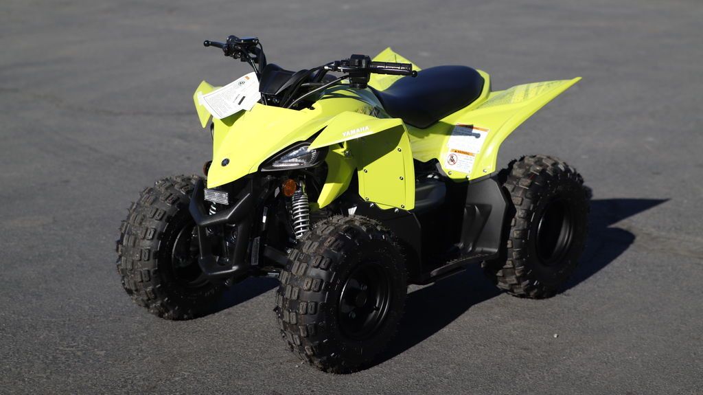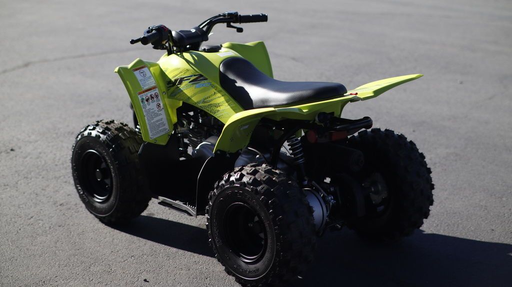 2026 Yamaha YFZ50 FIRST-TIME RIDER, LIFELONG MEMORIES Boasting electric start, automatic transmission and parental controls, this model is perfect for riders age 6 and up. Features may include: ENGINE The 49cc four-stroke SOHC engine is tuned for excellent low- to mid-range performance, perfect for beginning riders. The motor is air-cooled for simplicity, performance and long engine life, and uses ultra-reliable wet-sump lubrication. The CDI system means reliable ignition performance with a strong, efficient spark. Quick-access toolless air filter element makes servicing easy. The exhaust includes a standard spark arrestor. A two-stage rpm limiter, as well as a throttle limiter, enable matching engine performance to the rider's advancing skill level. CHASSIS/SUSPENSION A robust steel frame design and optimized wheelbase are ready for serious off-road. Single I-arm front suspension is tuned for light, easy steering and comfortable ride quality. Compact single-shock rear suspension for additional control and comfort. Swingarm is set at an optimized angle for rear shock performance. Duro® low-profile AT16 x 6.5-7 front and AT16 x 7-7 rear tires give the YFZ50 aggressive looks and sporty handling. Lightweight wheels further enhance the sporty look and handling character. ADDITIONAL FEATURES Aggressive styling is unmistakably inspired by the race-ready Yamaha YFZ450R, so little ones can ride like their heroes. A sealed, maintenance-free battery provides worry-free operation. A large 1.5-gallon fuel tank means more time on the trail.
