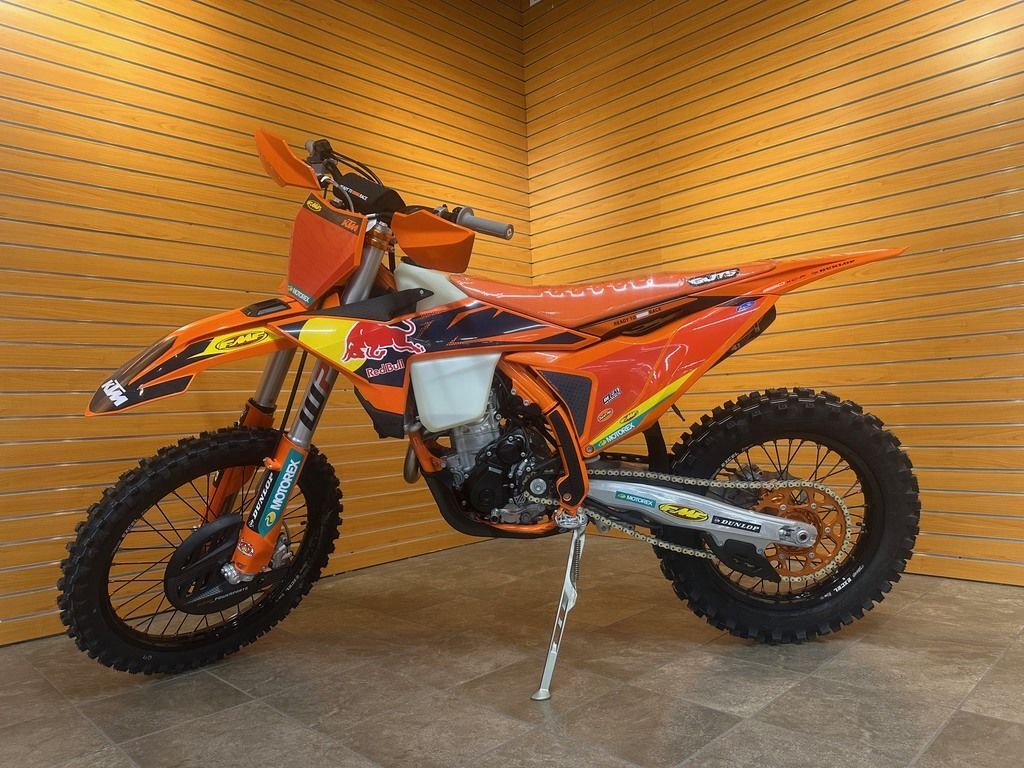 The KTM XC-F has taken its already awesome suspension package and turned it up to 11. The WP XACT Closed Cartridge spring forks and WP XACT rear shock feature settings to improve weight distribution and increase overall response. As always, the suspension boasts easy, tool-free setup at both ends, ensuring you chase down the podium with total control. On the rear, a hand-adjustable dual compression control allows riders to adjust high- and low-speed settings in a matter of seconds. The forks on the front end are also easily adjusted thanks to hand-adjustable clickers on the bottom of the fork shoe and top cap.