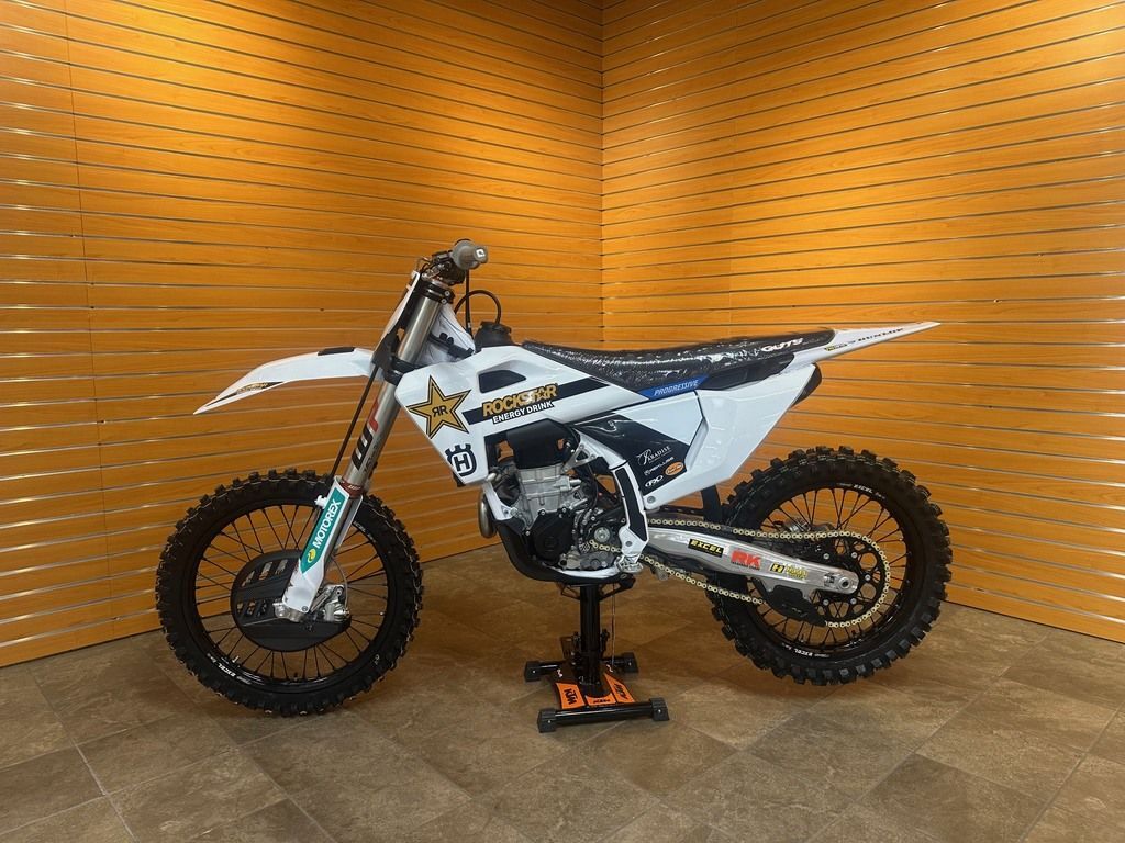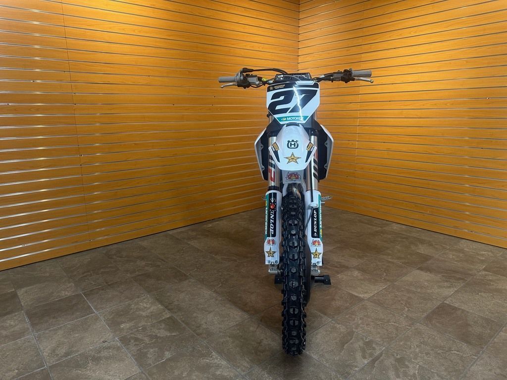 The incredible FC 450 is the flagship machine in the Husqvarna Motorcycles motocross line-up. Its class-leading performance is the result of combining a perfectly balanced chromium molybdenum chassis with a state-of-the-art engine. Additionally, riders can use multiple electronic rider aids to their advantage for a competitive edge on the race track. The FC 450 is equipped with race-tested components including Dunlop Geomax MX34 tyres, ProTaper handlebars, and WP suspension, all of which underline the premium specification of this exceptional model. Aboard the FC 450, you can find the fast way around any circuit.