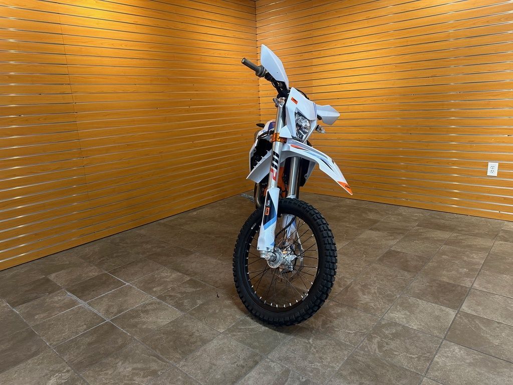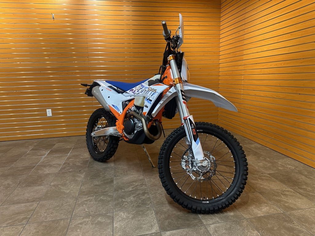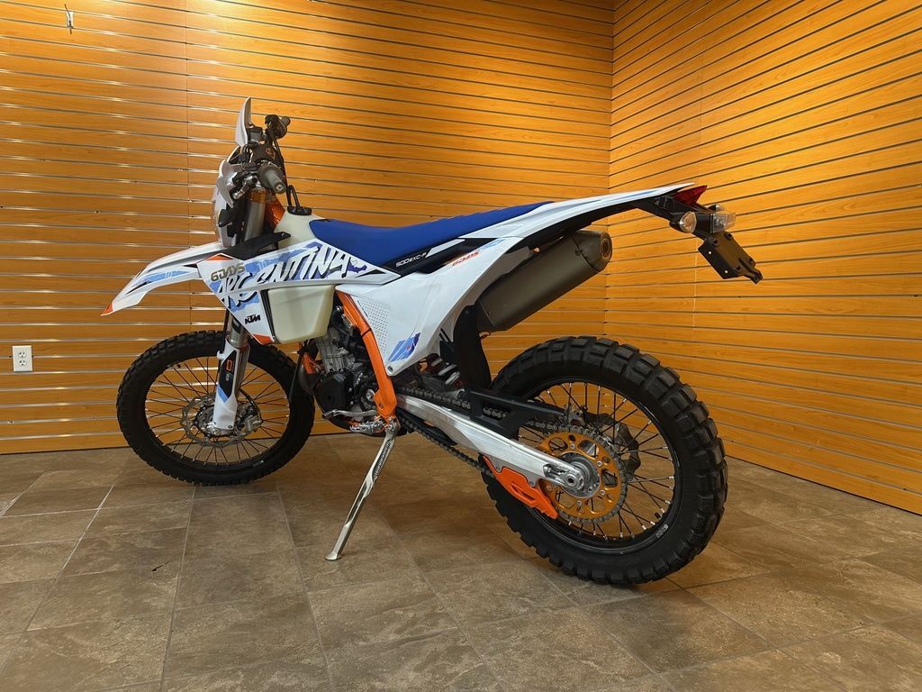 There are few machines that can hold their own against the KTM 500 EXC-F SIX DAYS. Power, torque, unmatched handling, and pure 4-stroke fury puts this dual-sport weapon in a class all of its own. Packing a new engine in an all-new frame, complete with closed-cartridge suspension, the 2024 KTM 500 EXC-F SIX DAYS is ready to take on any challenge.