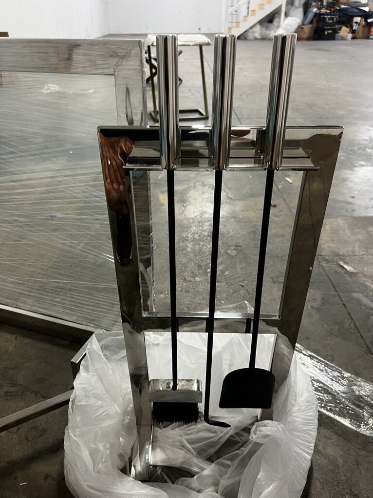 VenmoBeautiful and elegant chrome plated fireplace tools,(poker, shovel, broom), log holder stand and screen.