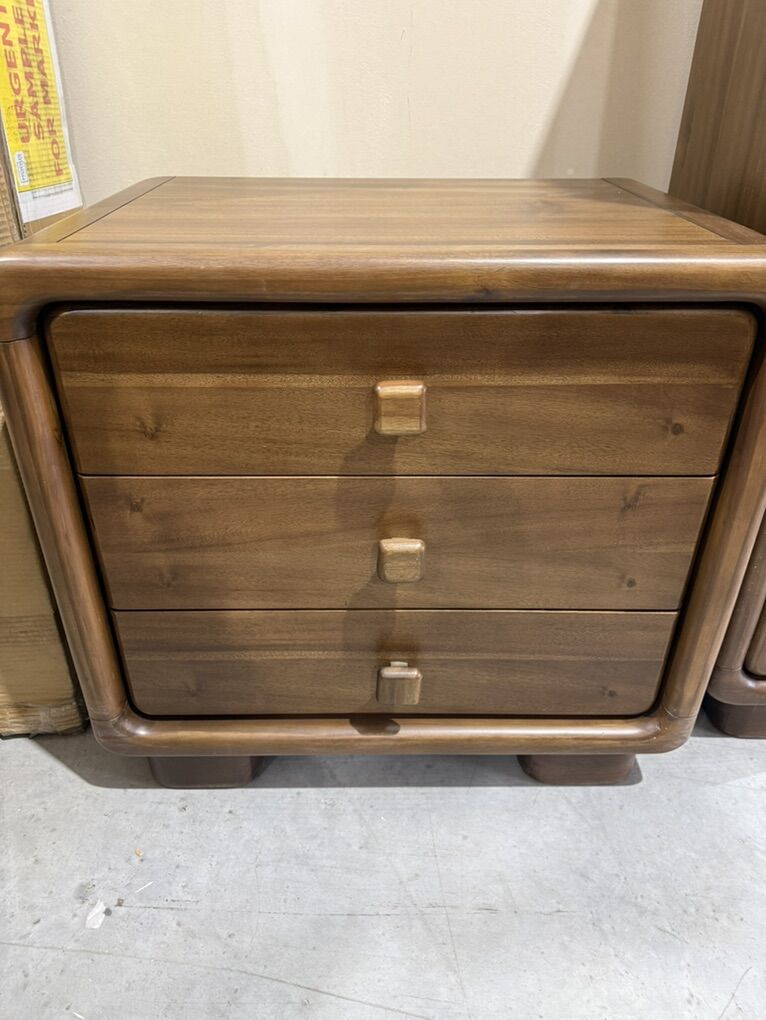 Details: • 3 drawers with smooth operation • Solid acacia wood construction • Clean, modern design • Works well as a nightstand or small storage piece • Open-box, NEW and freshly built • Easy transport in a truck or SUV • Original manufacturer warranty is not transferable • Dimensions 28 x 19 x 26