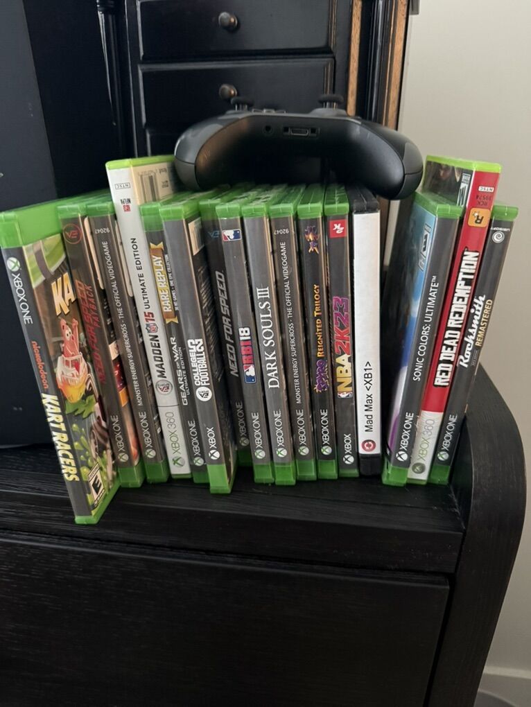Games: Kart racers, need for speed,madden15, gears of war ultimate edition, college football 25, need for speed, RBI18, darksouls3, monster entry super cross, Spyro, nba2k, mad max, sonic, red dead redemption, and rocksmith