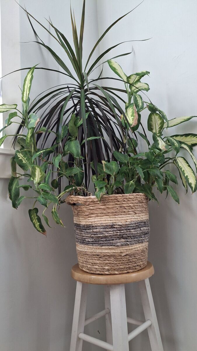 Several plants in the same basket. It grows nicely and likes the sunshine. The feathery grass like plant will grow much taller.
