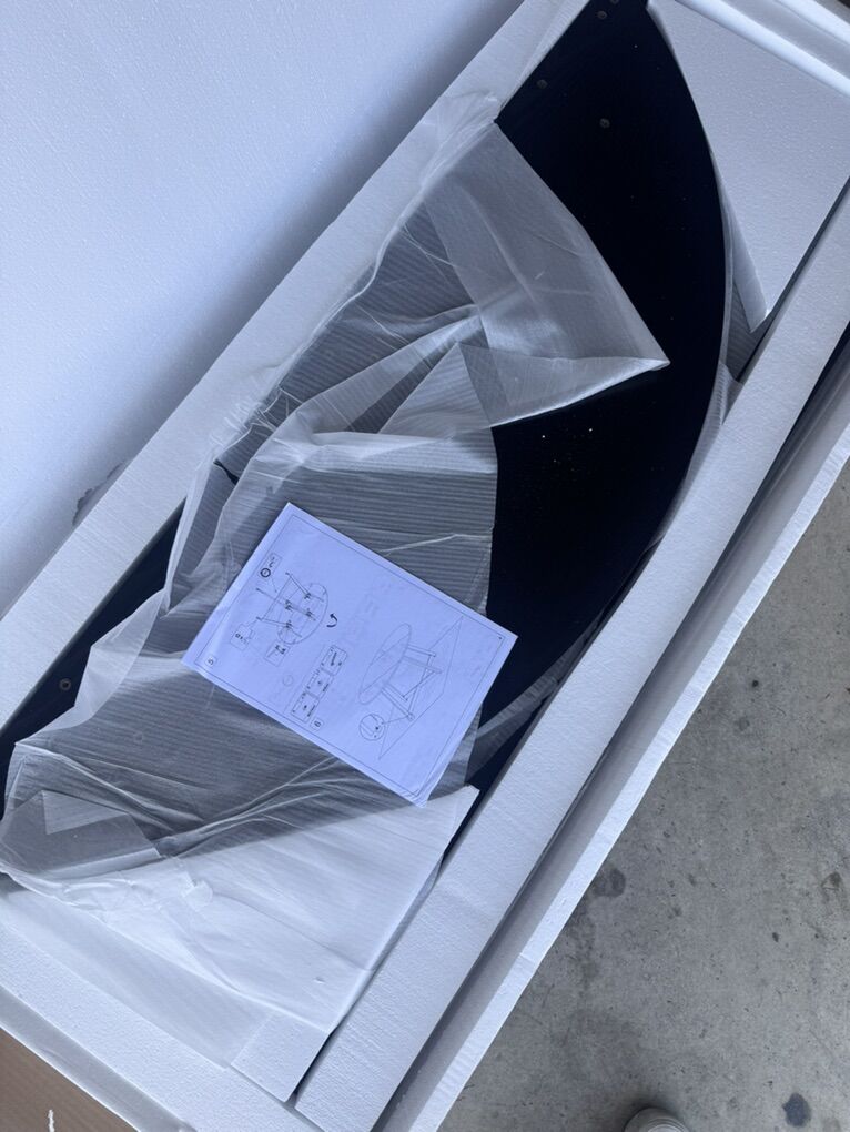 VenmoNew in box black round dining table. Not sure on measurements sorry. Everything is in the box.