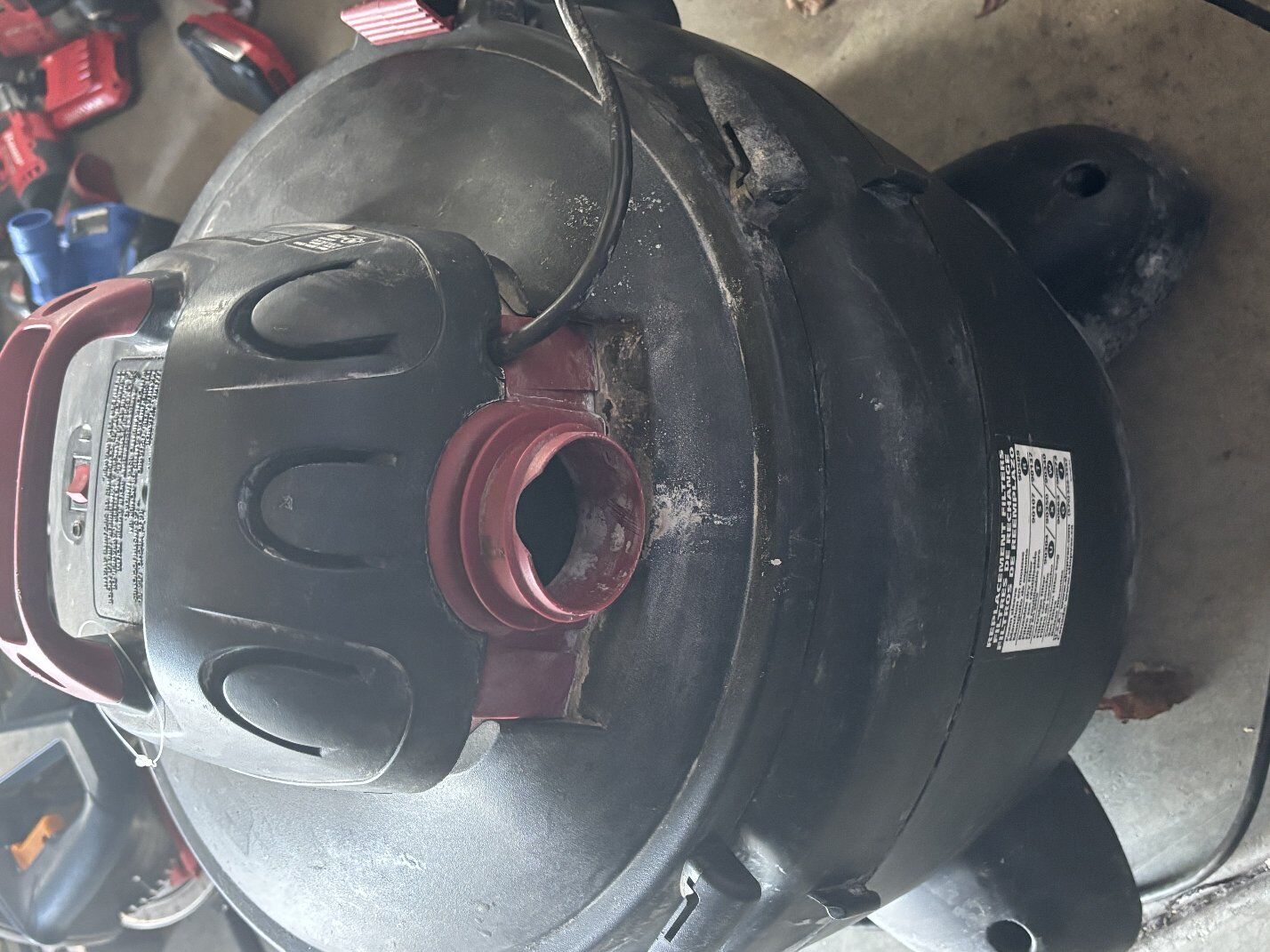 This shop vac works and looks good, just missing a clip on the top, not a concern unless you are lifting it alot. price reflects missing clip. way cheaper than retail. call Dustin now at 801-205-3404. I need it gone!