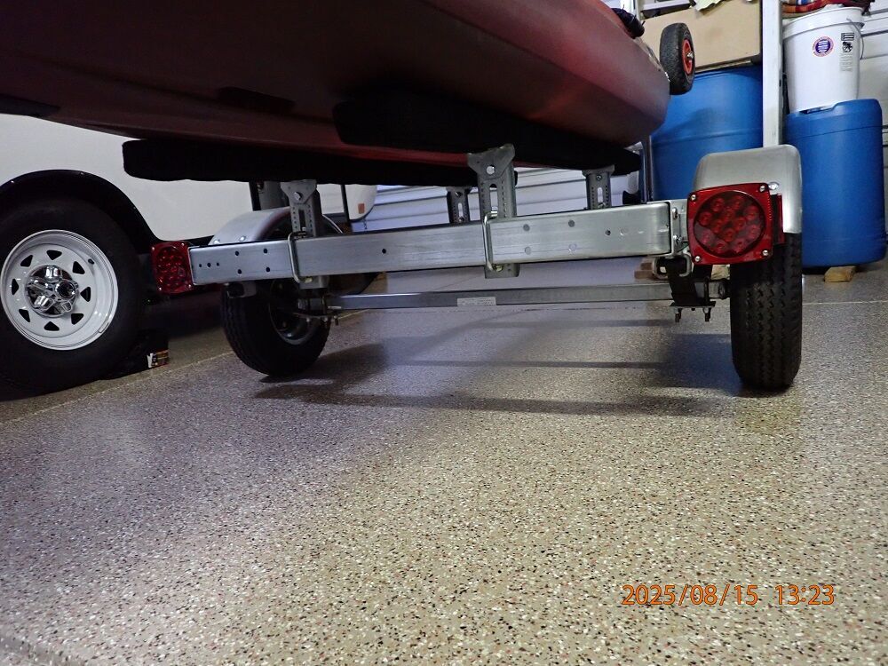 Features Include: Galvanized 2" x 3" Tongue & Frame for superior corrosion resistance. Axle is also galvanized. 5-Lug Galvanized Wheels for extra strength (5 on 4.5 Bolt Circle) 5-Stud Wheel Hubs prepacked with 1" bearings Quick-Latch Coupler fits standard 2" trailer ball Long Bow Stop Bracket provides for greater application flexibility Black Rubber Y-Shape Bow Stop & Roller Style Bow Stop included 5' long 2"x4" carpeted bunk boards can be mounted to bolsters with included hardware 8" tall and 12" tall galvanized bolster brackets included for bunk mounting Complete trailer light kit with wiring harness meet DOT lighting requirements Hand winch includes winch strap with hook Assembled Dimensions: Overall Length: 140" Overall Width: 54" Frame Width: 40" Distance Between Cross Members: 32" Coupler to Axle: 120" Frame Height Above Ground: 18"