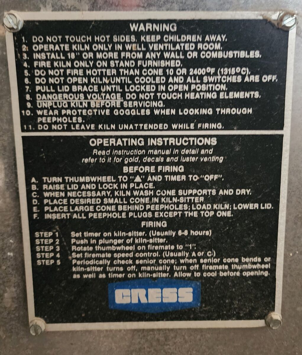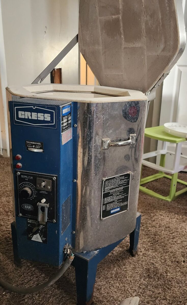 This a near perfect Cress LT-3K ceramics kiln. Like grandma's car she never drove. All coils are in perfect shape. All electrical near perfect, showing age only. No damage to any inner workings or parts. Comes with 3 different cone packages types. Low, Mid and High fire cones. (04, 05, 06) Also comes with a cone pack holder. Comes with one shelf. Includes several pieces of kiln furniture. Kiln stand included.