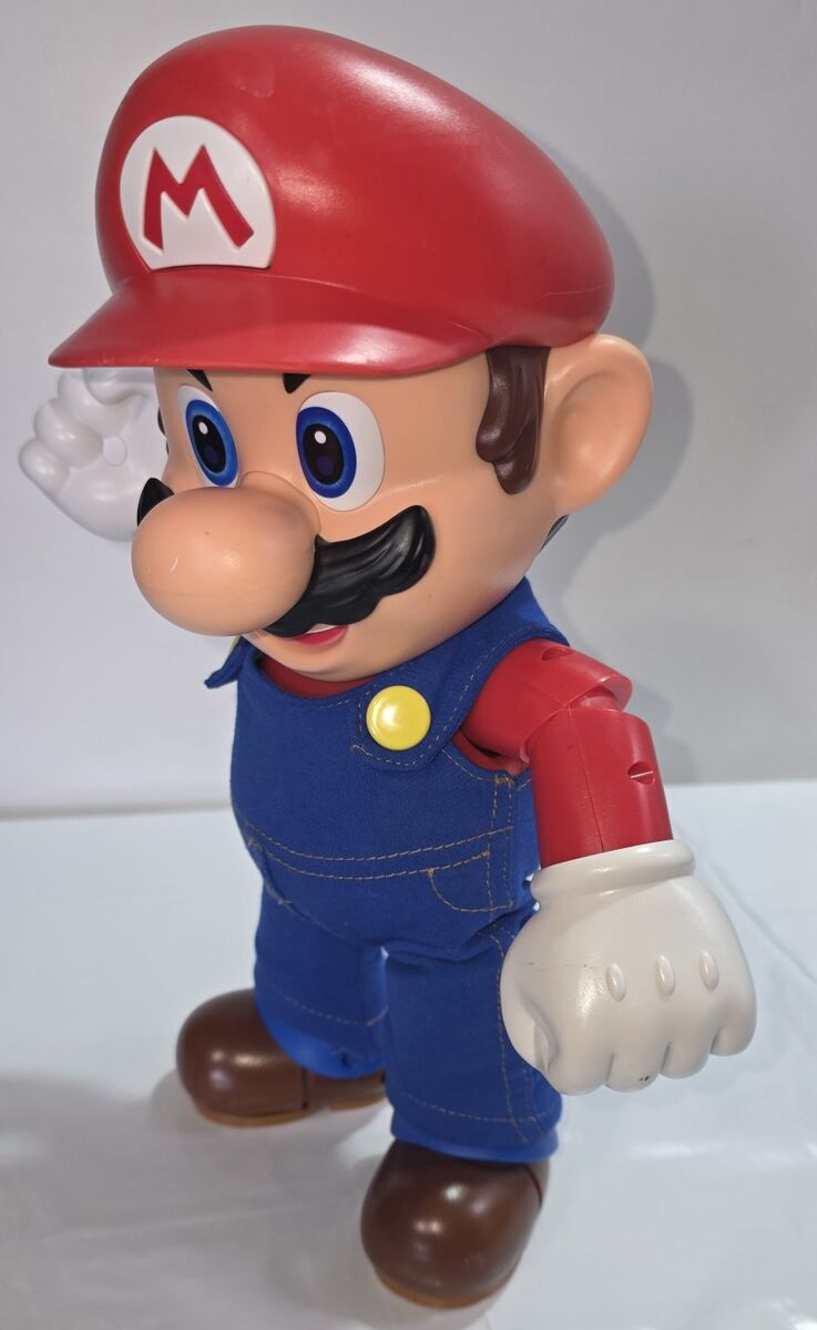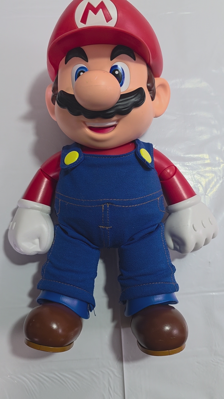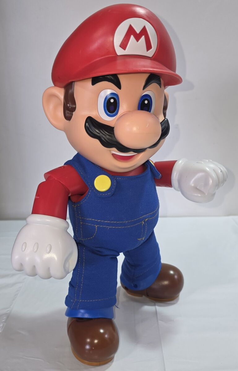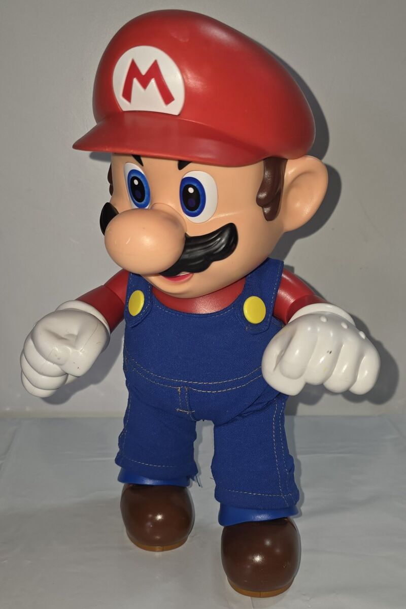 Pre-Owned Nintendo IT’S MARIO Figure 12". Trigger points on Mario's hands, feet, and hat activate over 30 sound effects and phrases. Lifting Mario quickly activates his iconic jumping sound effect. This authentically detailed figure boasts 15 points of articulation for dynamic posing. Bring the 12-inch tall Super Mario to life, a pop-culture icon from the popular Super Mario Bros franchise.