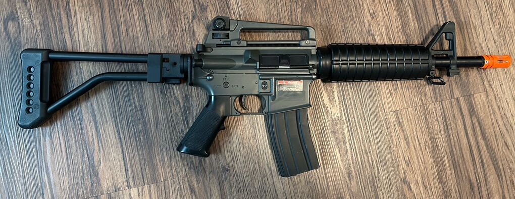 VenmoThis is a well made battery powered airsoft M4 style with an aftermarket metal folding stock. I bought this a while back and it does not have the battery. They’re available on Amazon. Selling it cheap. We’re just like to find it a new home. Thank you.