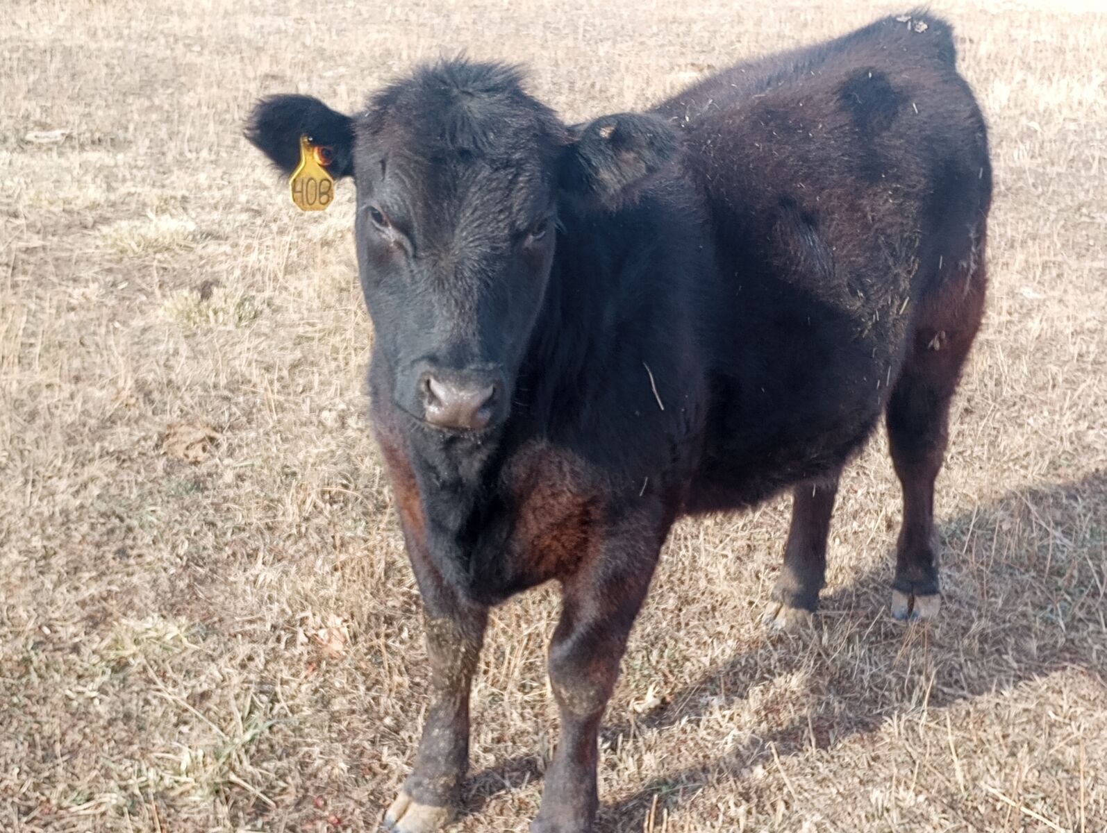 Born 11/18/2024 and ready to be bred. She was weaned on 4/25/25 and weighed 435 pounds and I have a yearling wieght of 864 pounds on 11/21/25. Great quality Heifer that is to good to take to the butcher in todays cattle market. Comes from a good purebred Red Angus mother and a Black angus bull that I raised and sold. She is ready to be bred and should make an excellent mother. She is gentle natured and would be great in someones smaller pasture or entered into another herd.